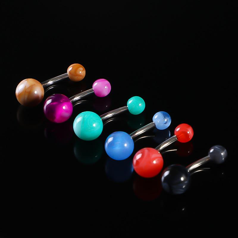 Piercing para el cuerpo con textura de mármol de imitación, anillo para el ombligo, acrílico, uña para el ombligo, joyería abdominal de acero inoxidable multicolor.