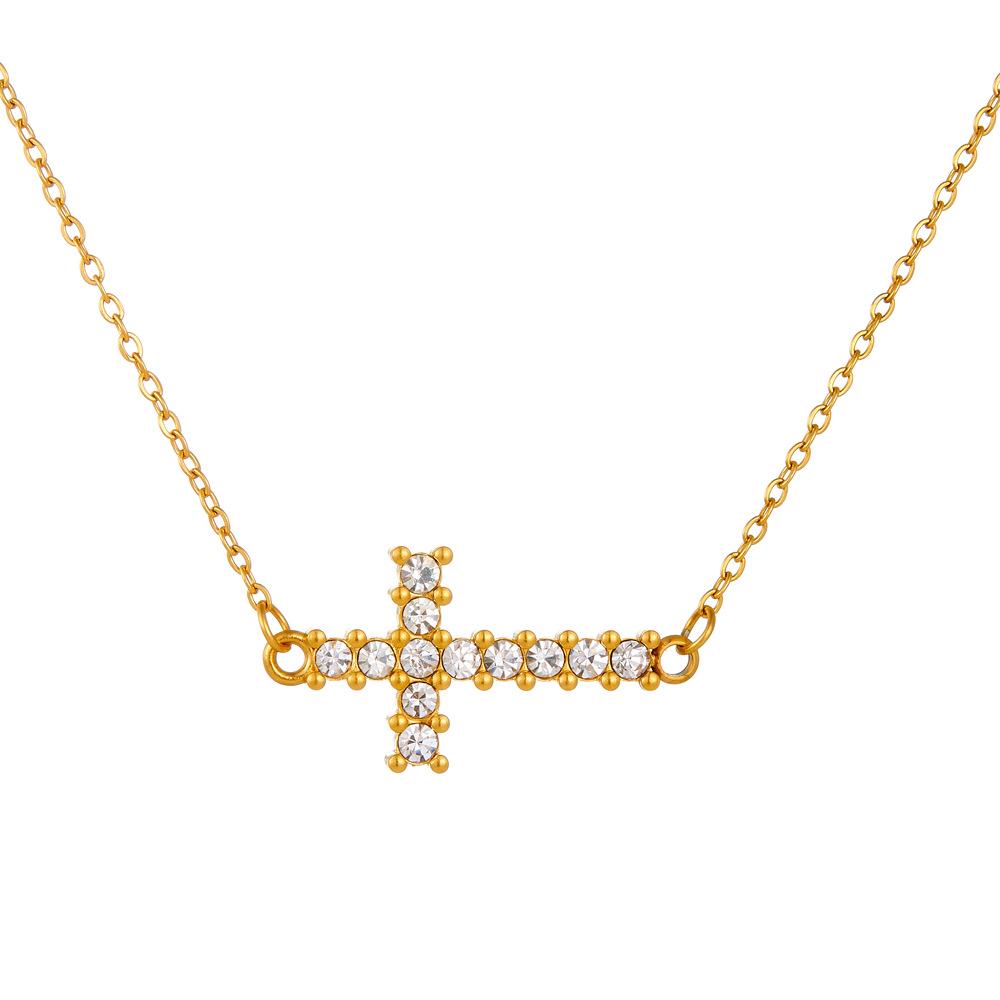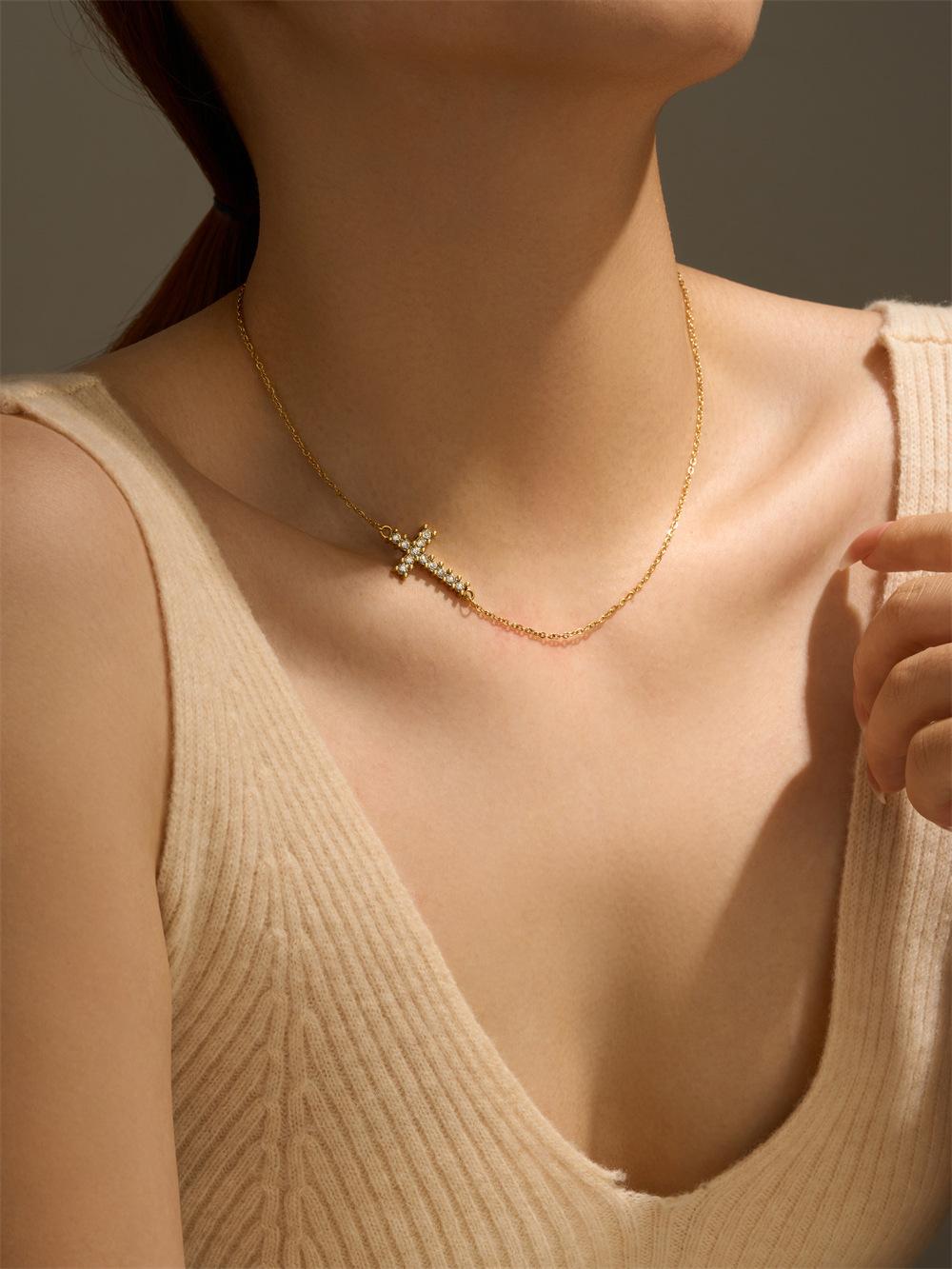 Explosiones Transfronterizas Moda Simple Estilo Europeo y Americano Personalidad Diamante Cruz Collar para Mujer Acero de Titanio de Alta Gama Collar Nicho