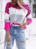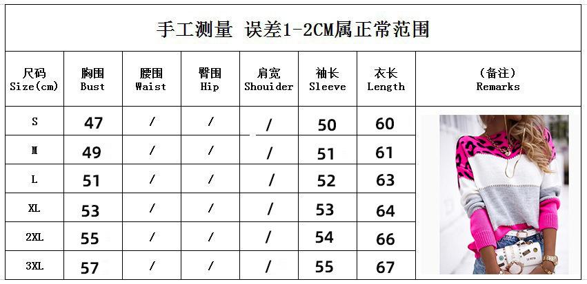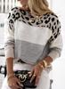 Tejido de punto transfronterizo europeo y americano para mujer, nuevo suéter de primavera y otoño de manga larga para usar debajo, tejido de punto casual con cuello redondo y estampado de leopardo en bloques de color