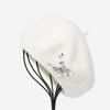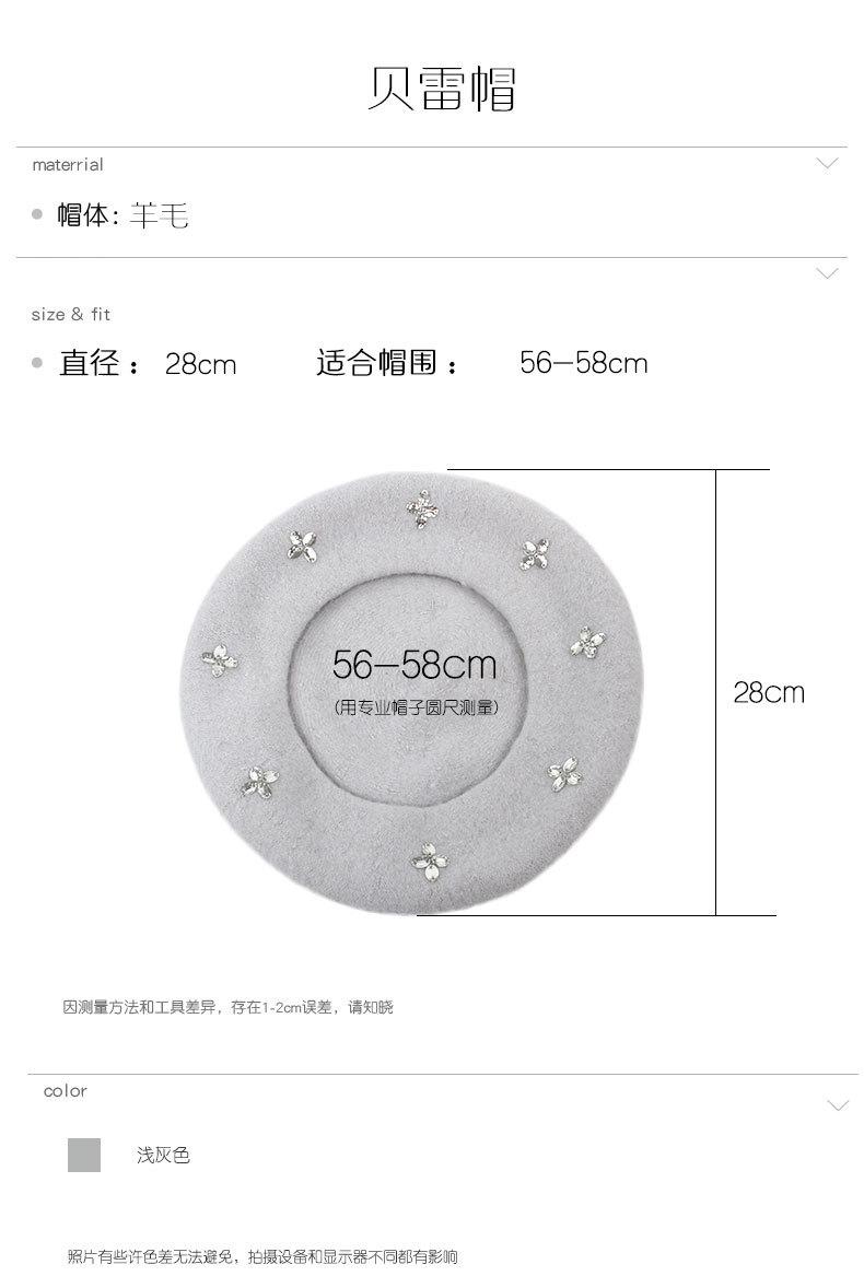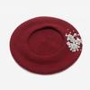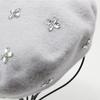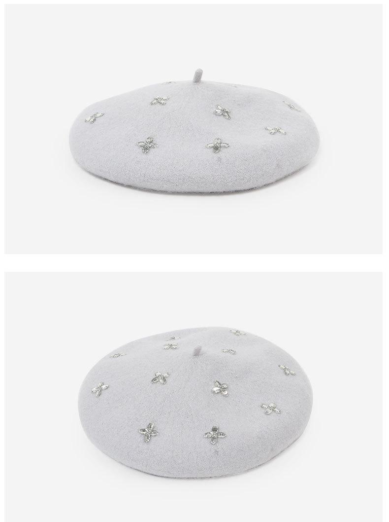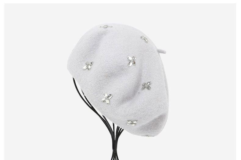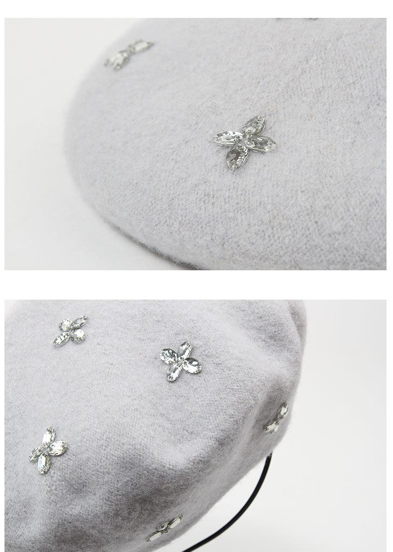 Boina gris para mujer otoño e invierno hecha a mano flor de cristal de cuatro hojas elegante elegante sombrero de lana boina de moda que combina con todo