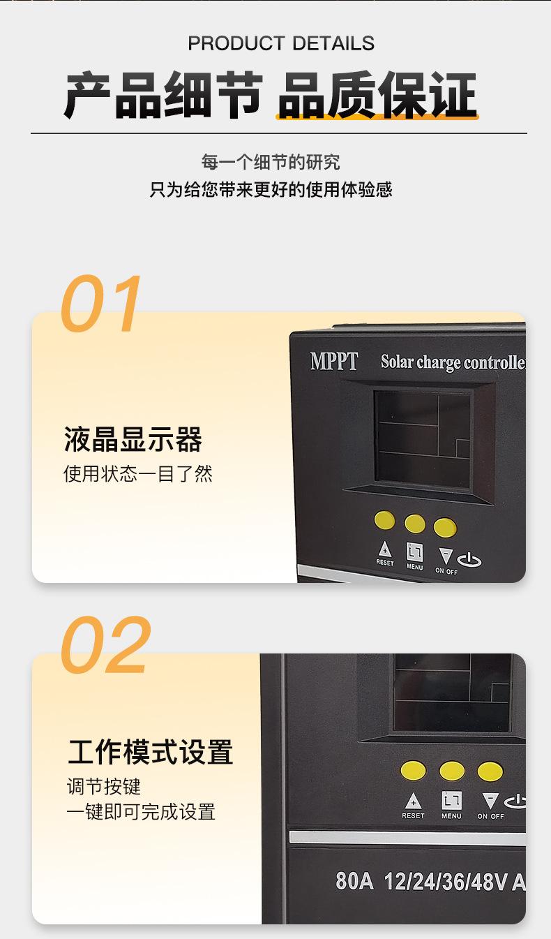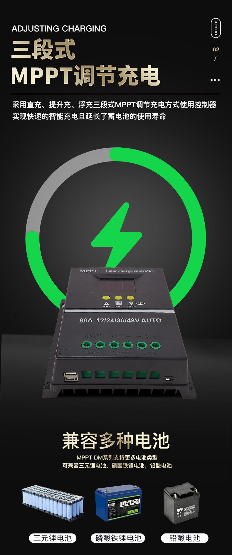 Controlador solar reconocimiento automático inteligente 12-24V carga de alta eficiencia controlador solar fotovoltaico MPPT