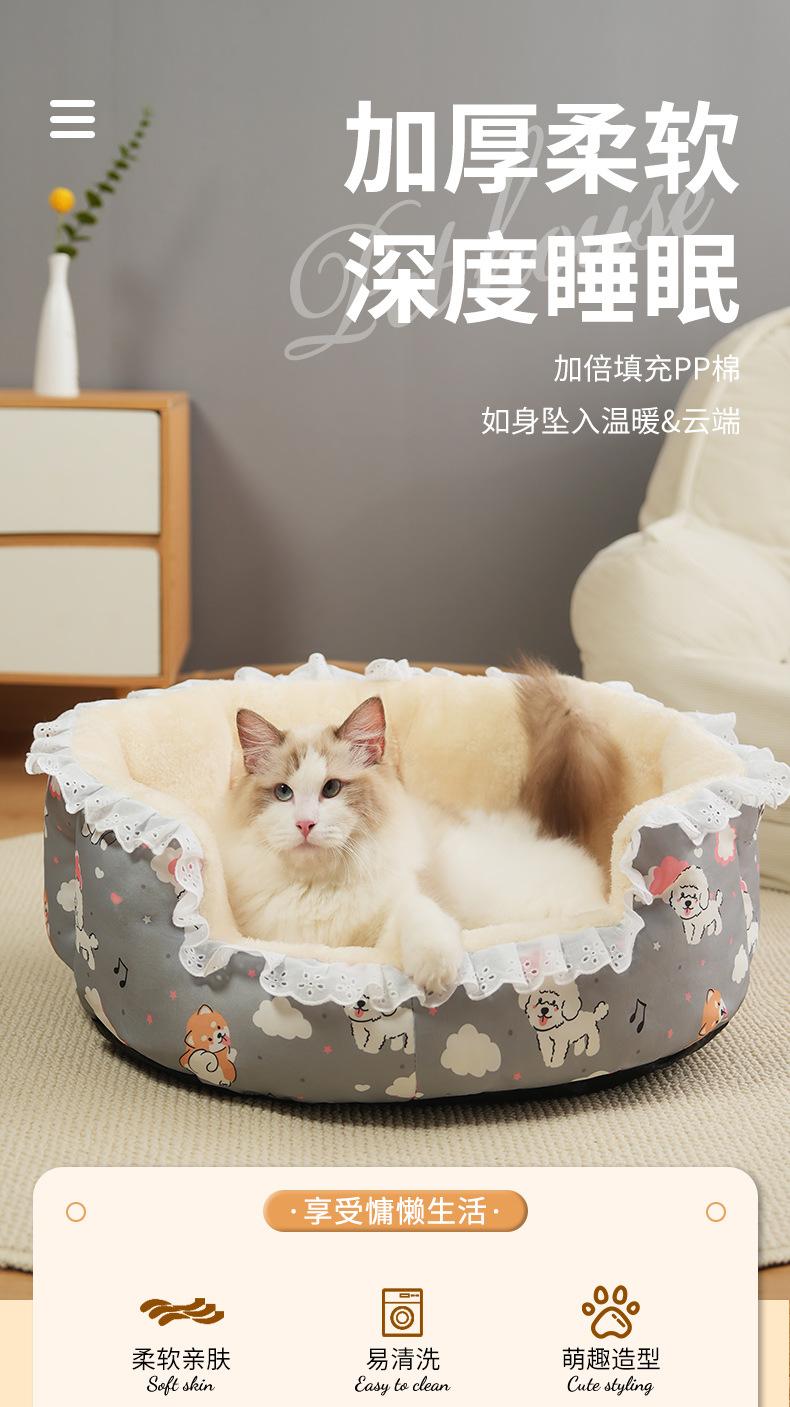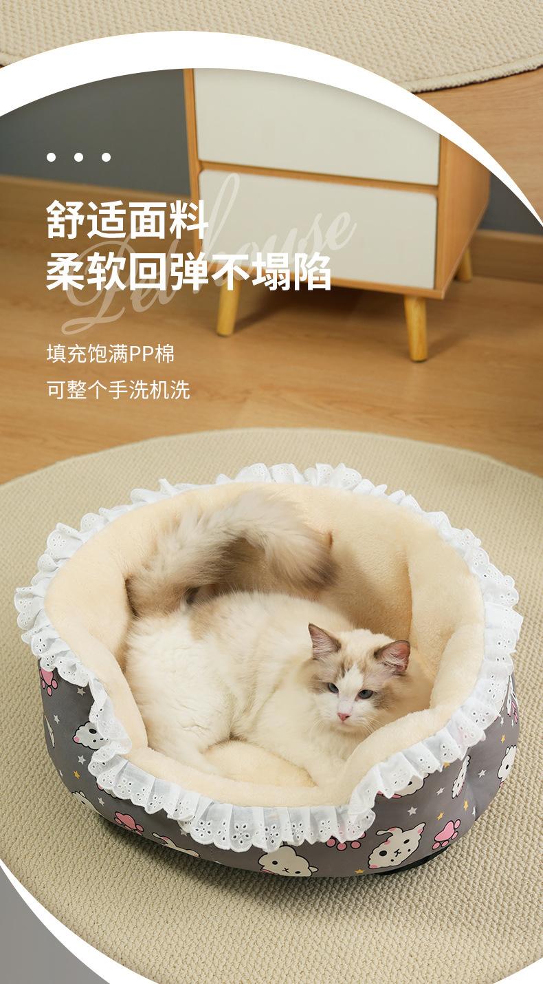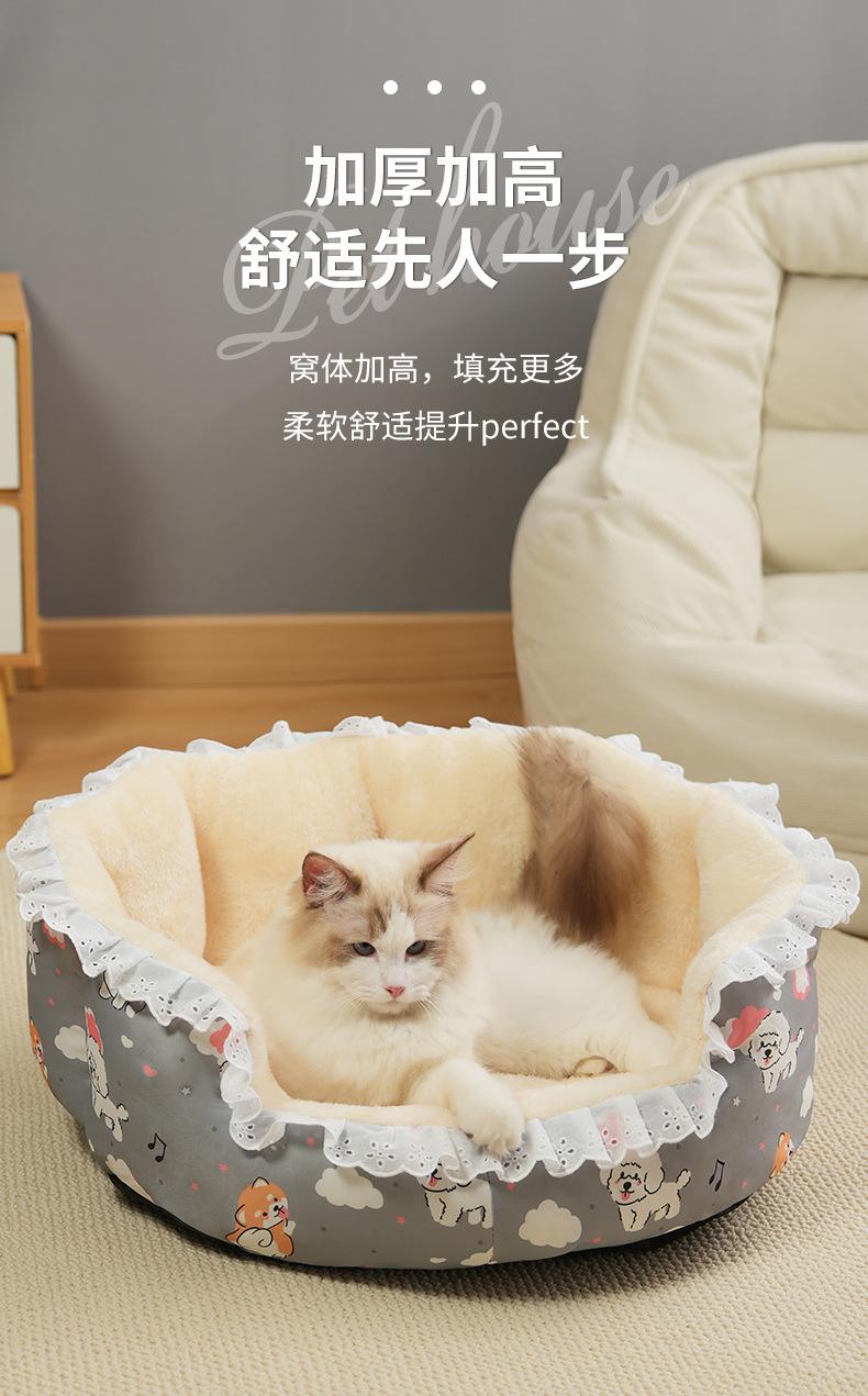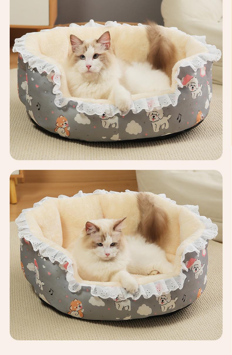 Caseta Nido para Gato Invierno Cálido Abierto Falda Floral Nido Cuadrado Engrosado Cuatro Estaciones Universal Nido para Mascota Suministros para Mascotas