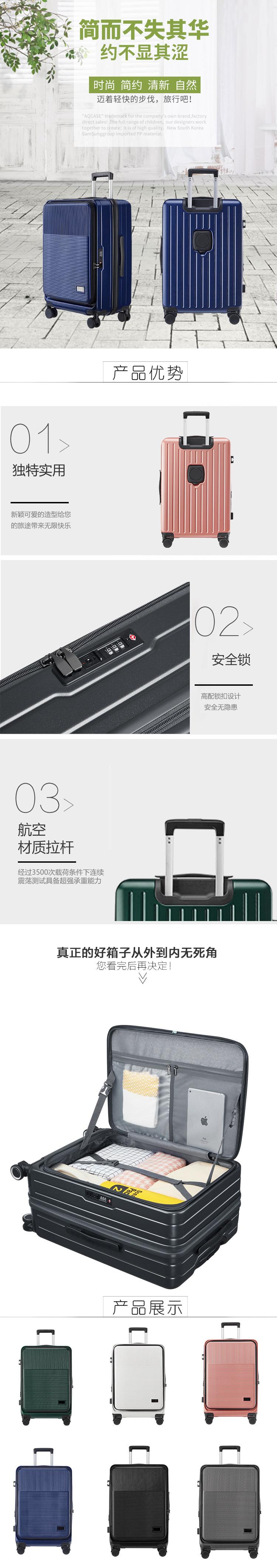 En stock Suministro de maleta anticaída de 20 pulgadas, maleta con ruedas universal para viajes de negocios, maleta con ruedas y apertura frontal, maleta multifuncional