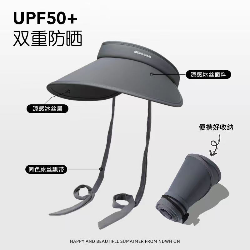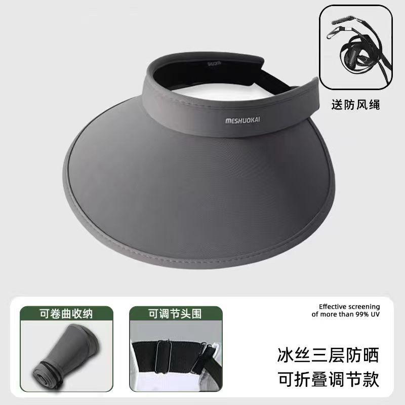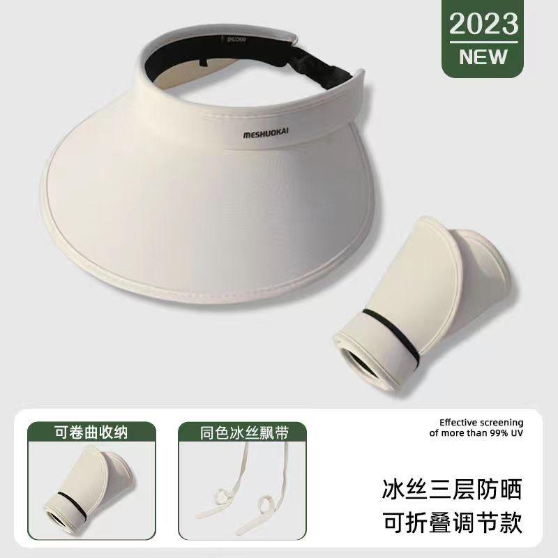 Nuevo Sombrero de Sol de Ala Ancha de Nailon de Seda de Hielo para Protección Solar Verano Anti-UV Ciclismo Plegable Sombrero de Sol de Copa Abierta
