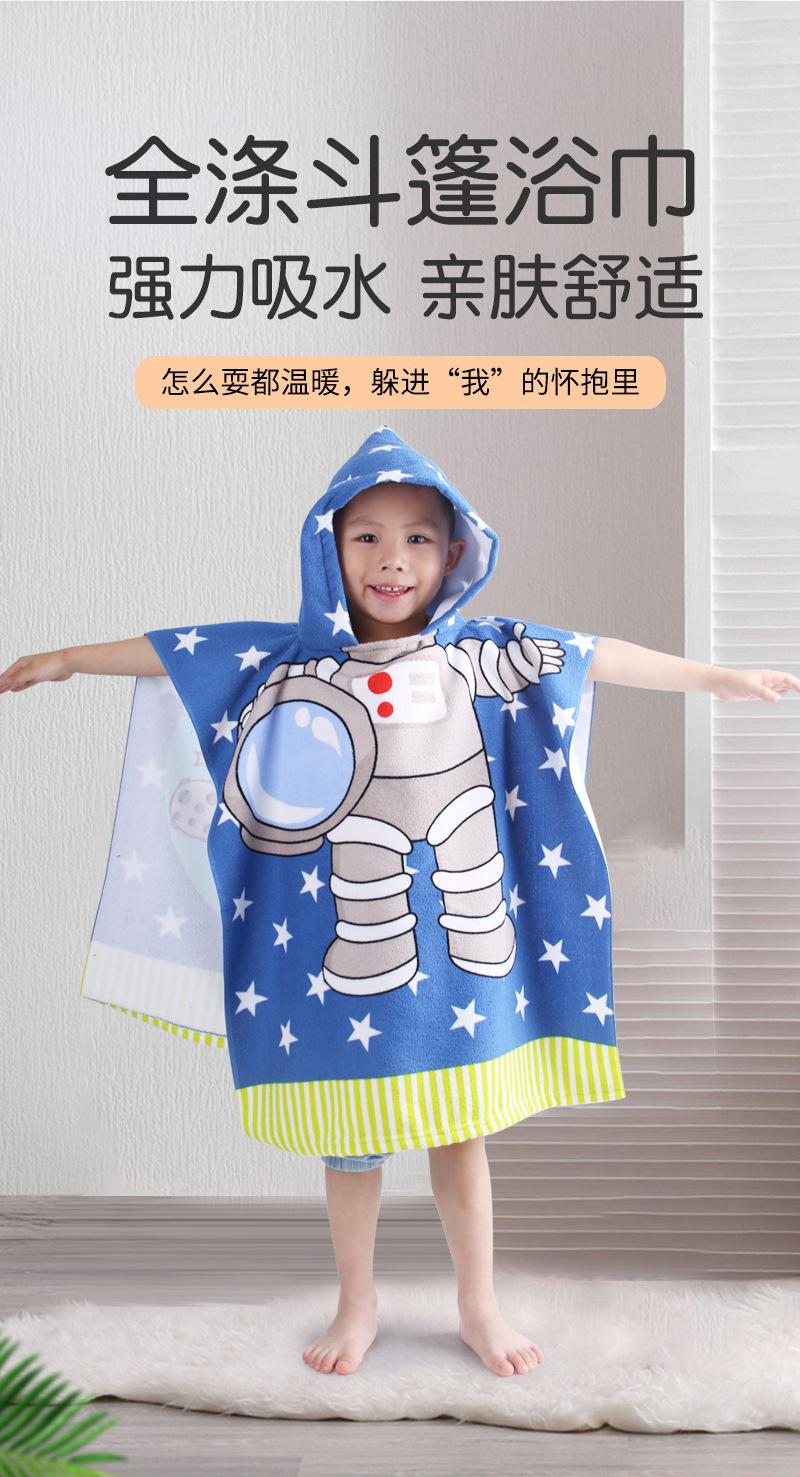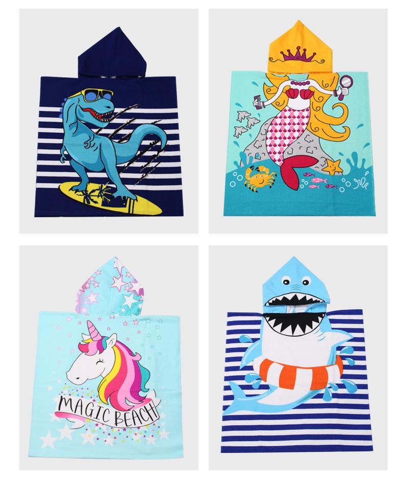 Capa de toalla de baño con capucha para niños con dibujos animados transfronterizos, toalla de playa absorbente de secado rápido, albornoz personalizado