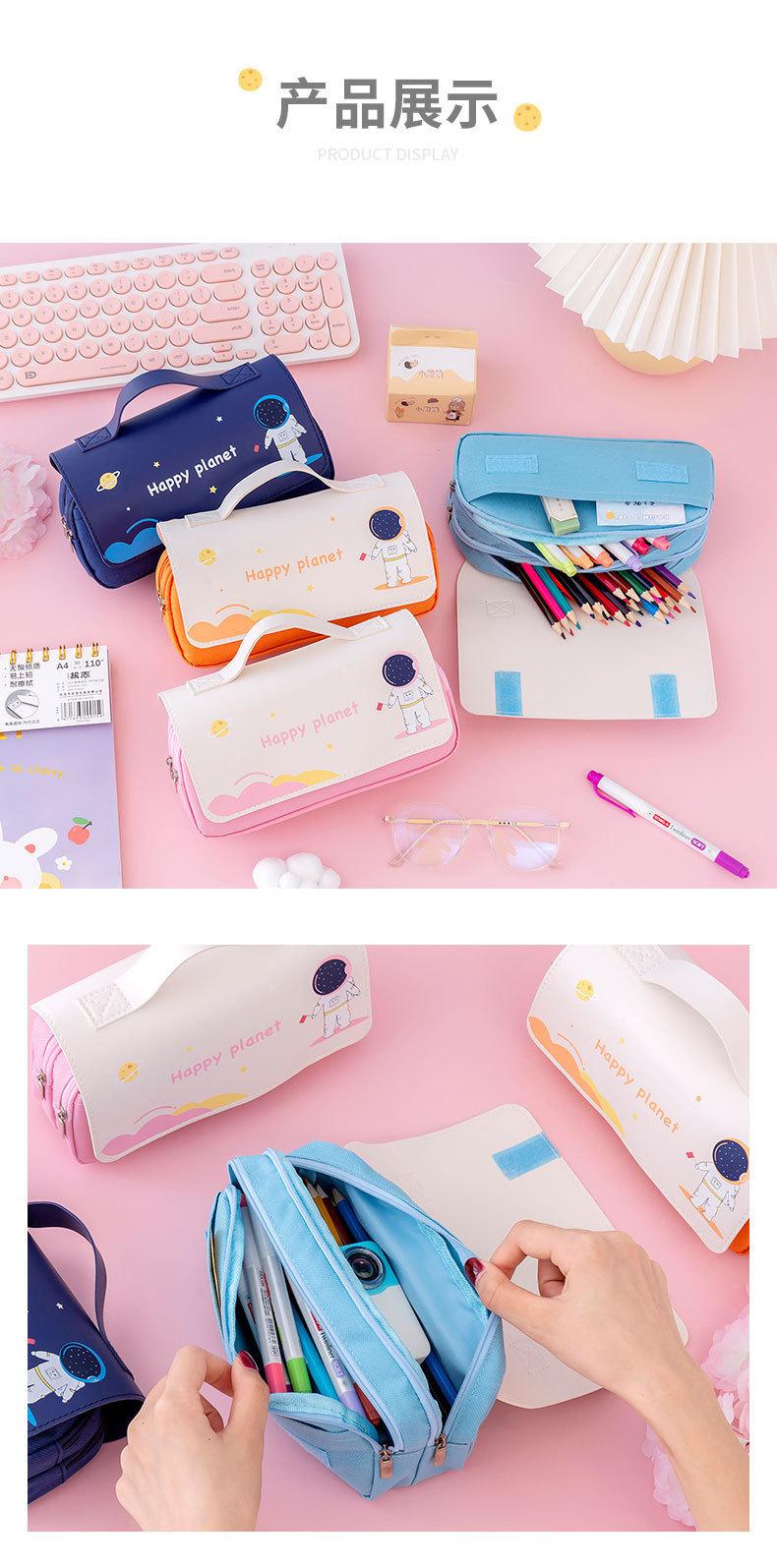 Estuche para lápices de dibujos animados para estudiantes de primaria, bolsa de papelería portátil de gran capacidad, bolsa de almacenamiento creativa con diseño de astronauta, caja de papelería al por mayor