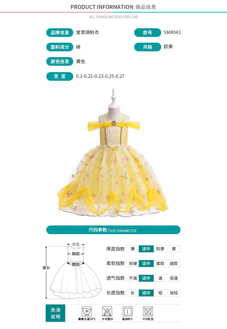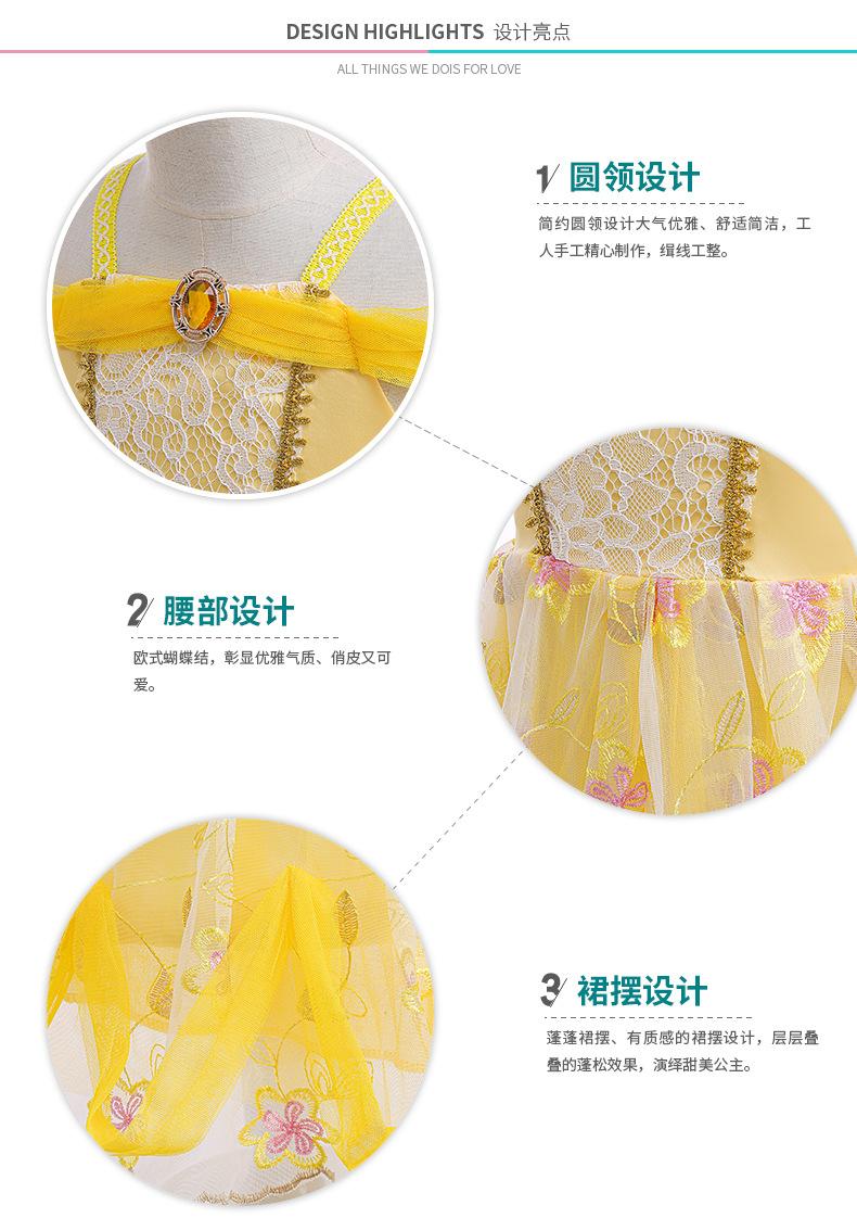 Vestido de princesa Bella europeo y americano, vestido para niños, falda de vuelo Halloween, la Bella y la Bestia, vestido de princesa Beier para niña