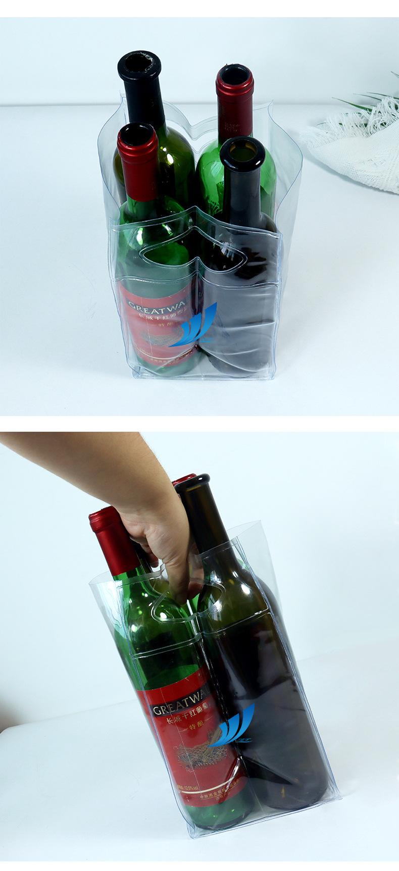 Bolsa de PVC, bolsa para vino tinto, bolsa de vino de moda, bolsa de regalo de grosor simple y doble, bolsa de embalaje, bolsa transparente portátil