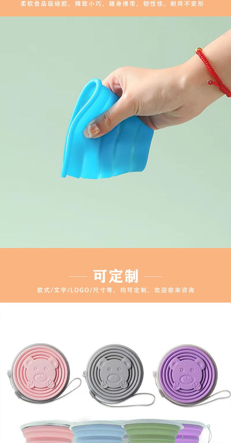 Taza plegable de silicona portátil para deportes al aire libre, de dibujos animados, para viajes deportivos, retráctil, hervidor de agua comprimido de grado alimenticio.