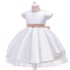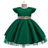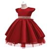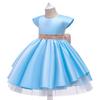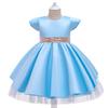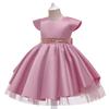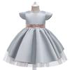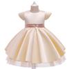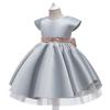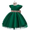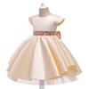 Vestido europeo y americano para niños con lazo de lentejuelas, vestido de princesa abullonado de tela forjada, color sólido, vestido de anfitriona para niña