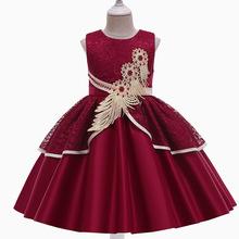 Vestido de niña con apliques para comercio exterior europeo y americano 2021, falda de tela forjada abullonada, vestido de princesa para boda, vestido de noche para niña