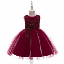 Vestido de Niña de las Flores de Comercio Exterior de AliExpress con Apliques de Cuentas Vestido de Princesa de Encaje Forjado para Niñas Lazo Vestido para Niños