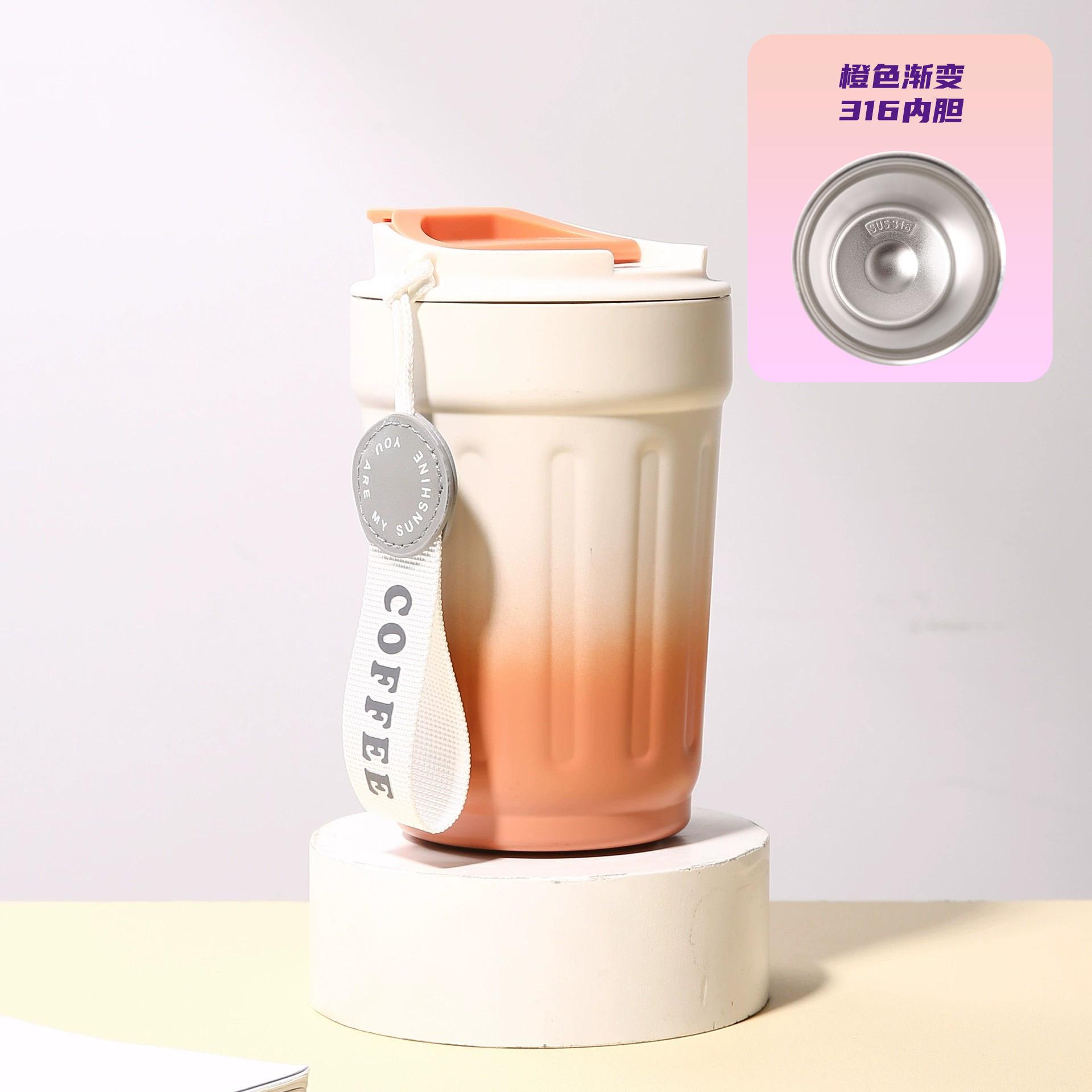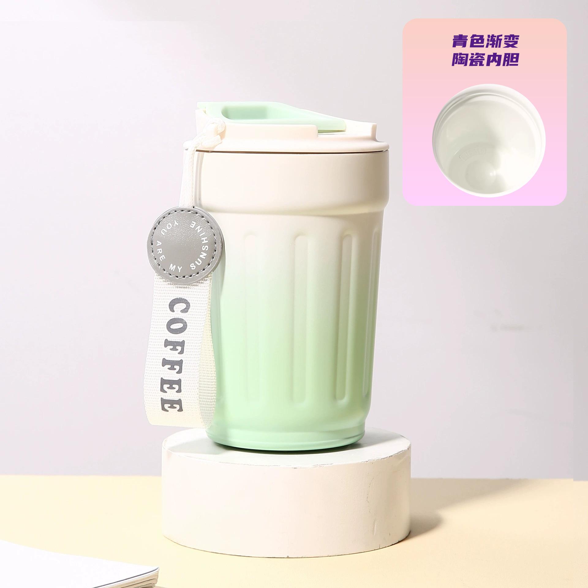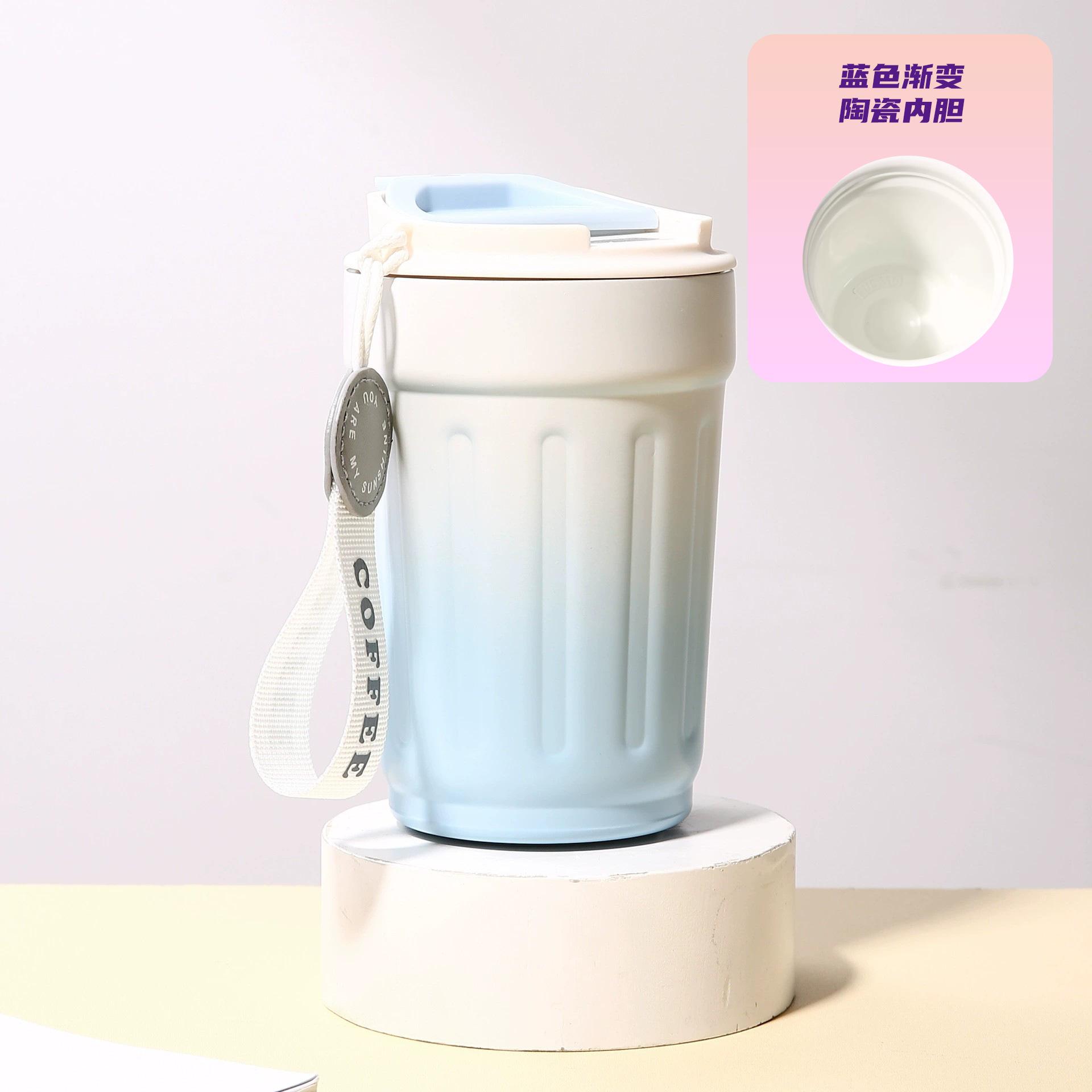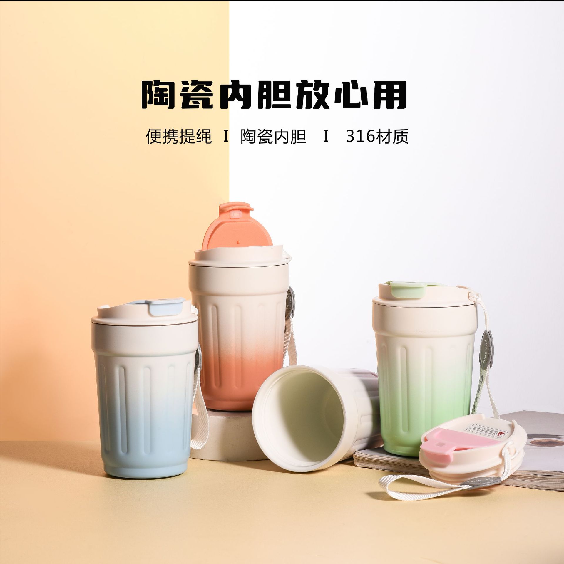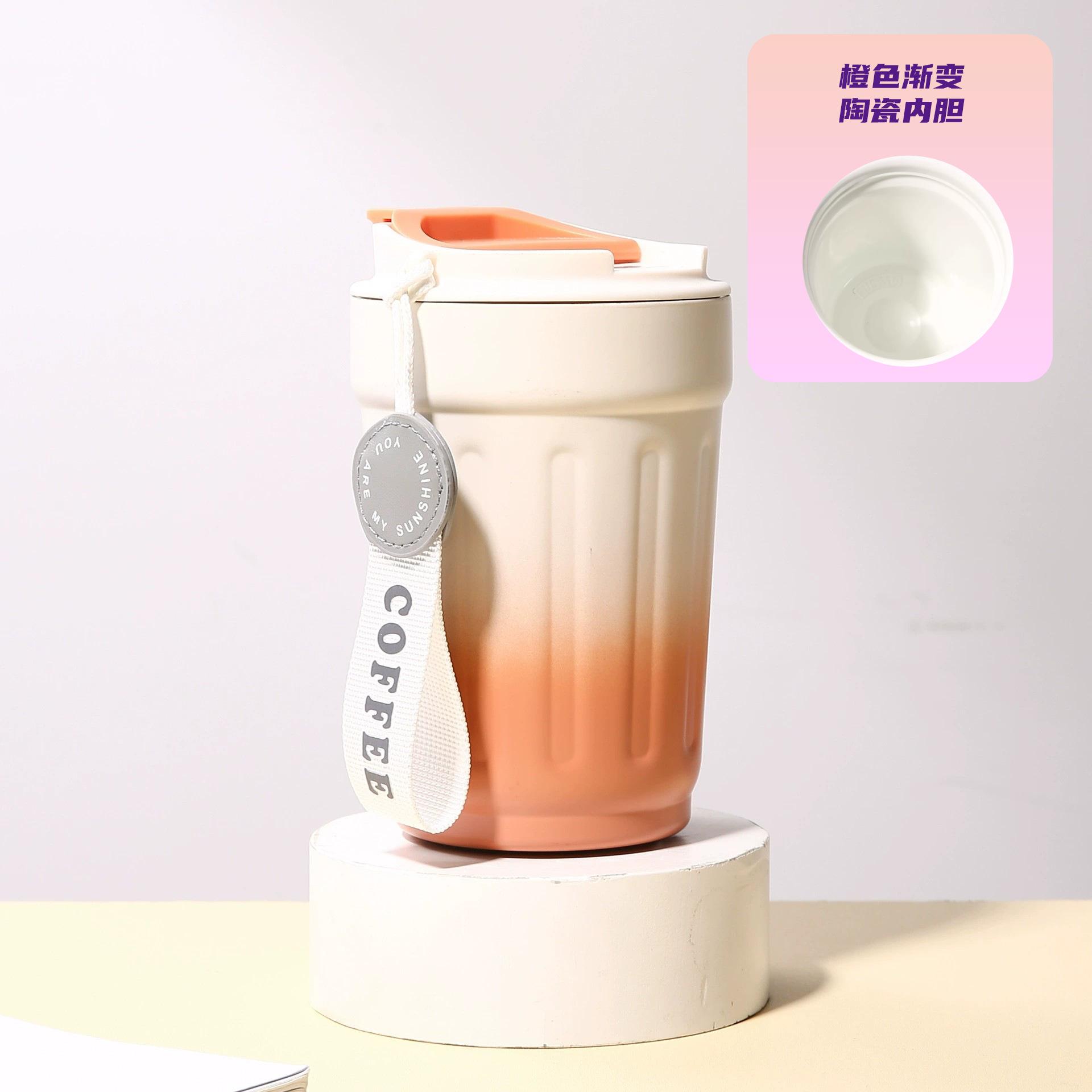 Taza de café con revestimiento de cerámica y taza de vacío de acero inoxidable 316 de alta apariencia con cuerda, taza de agua portátil con gradiente para niña