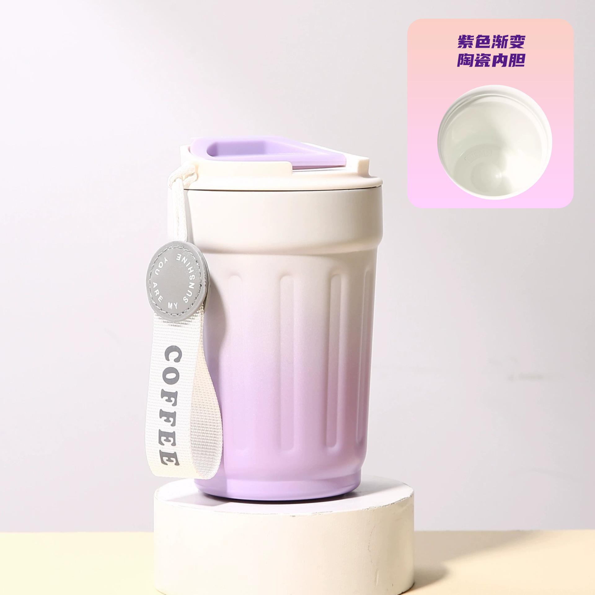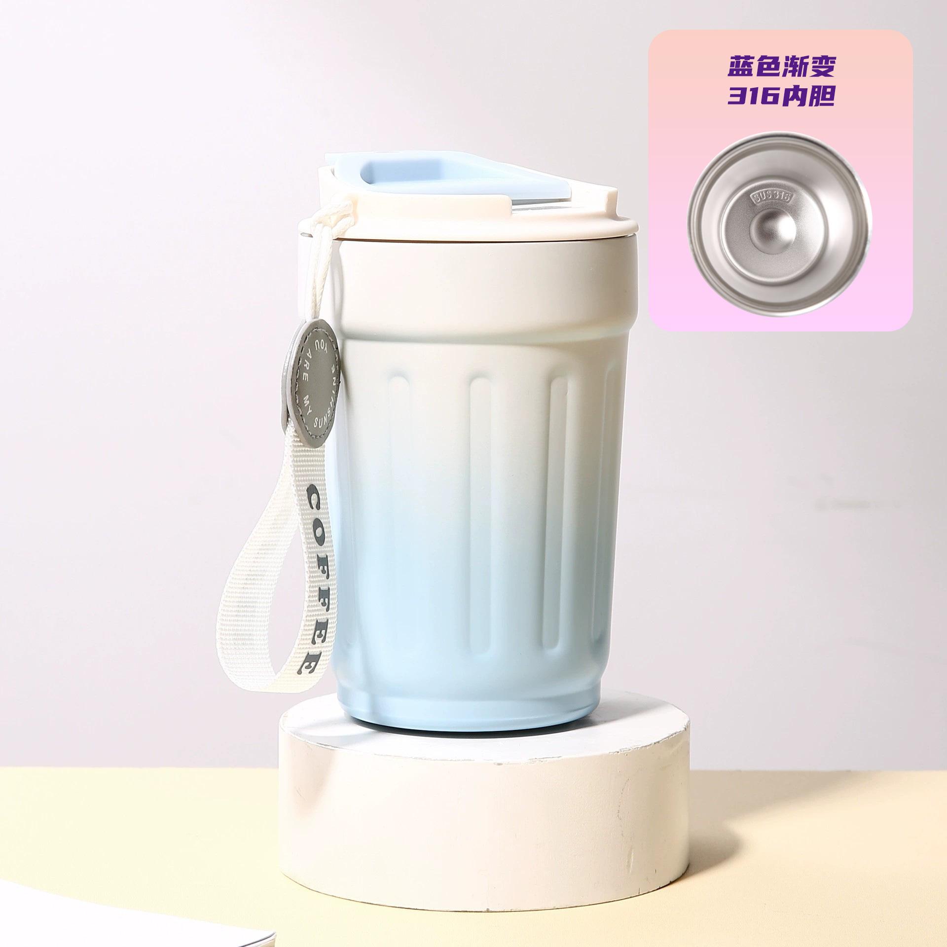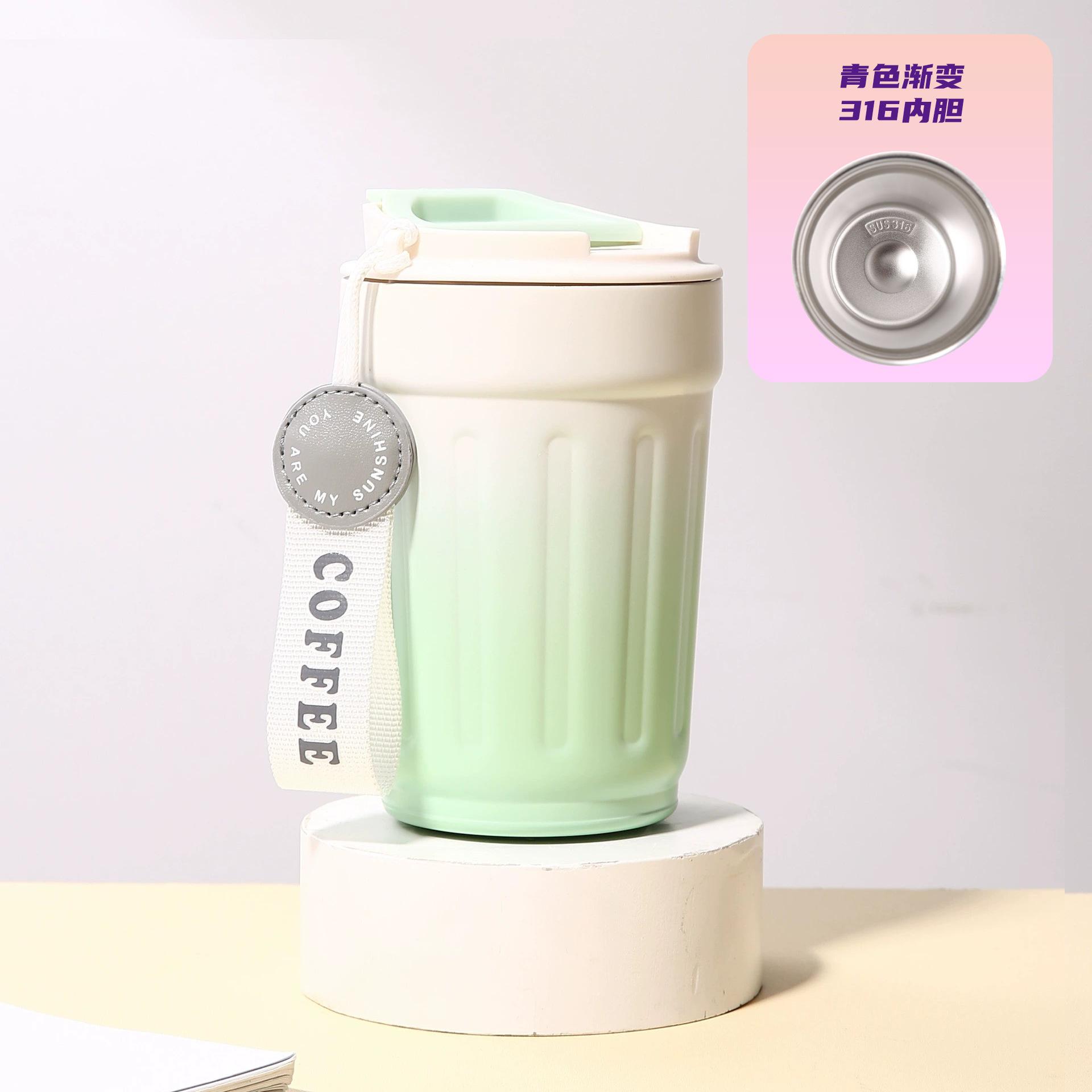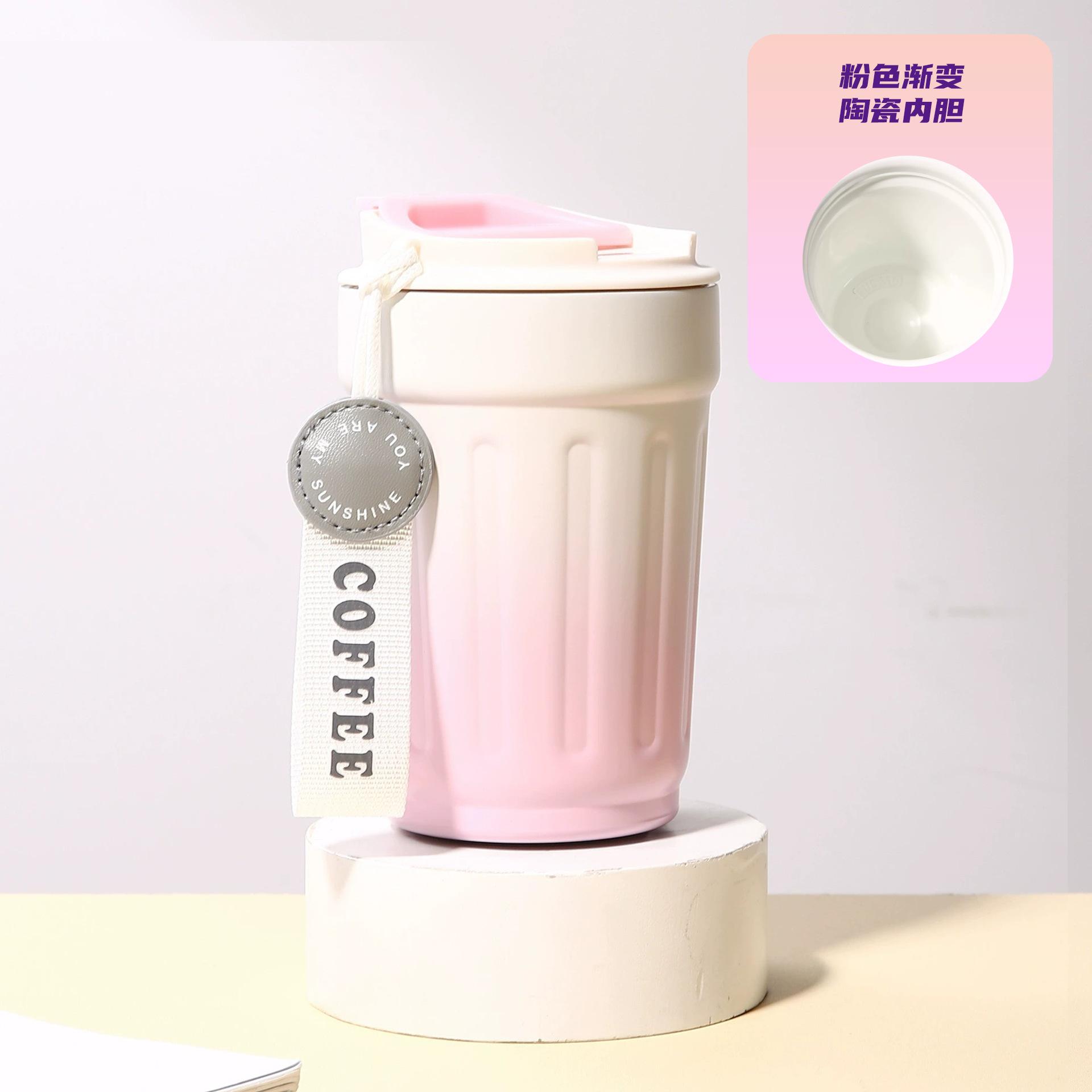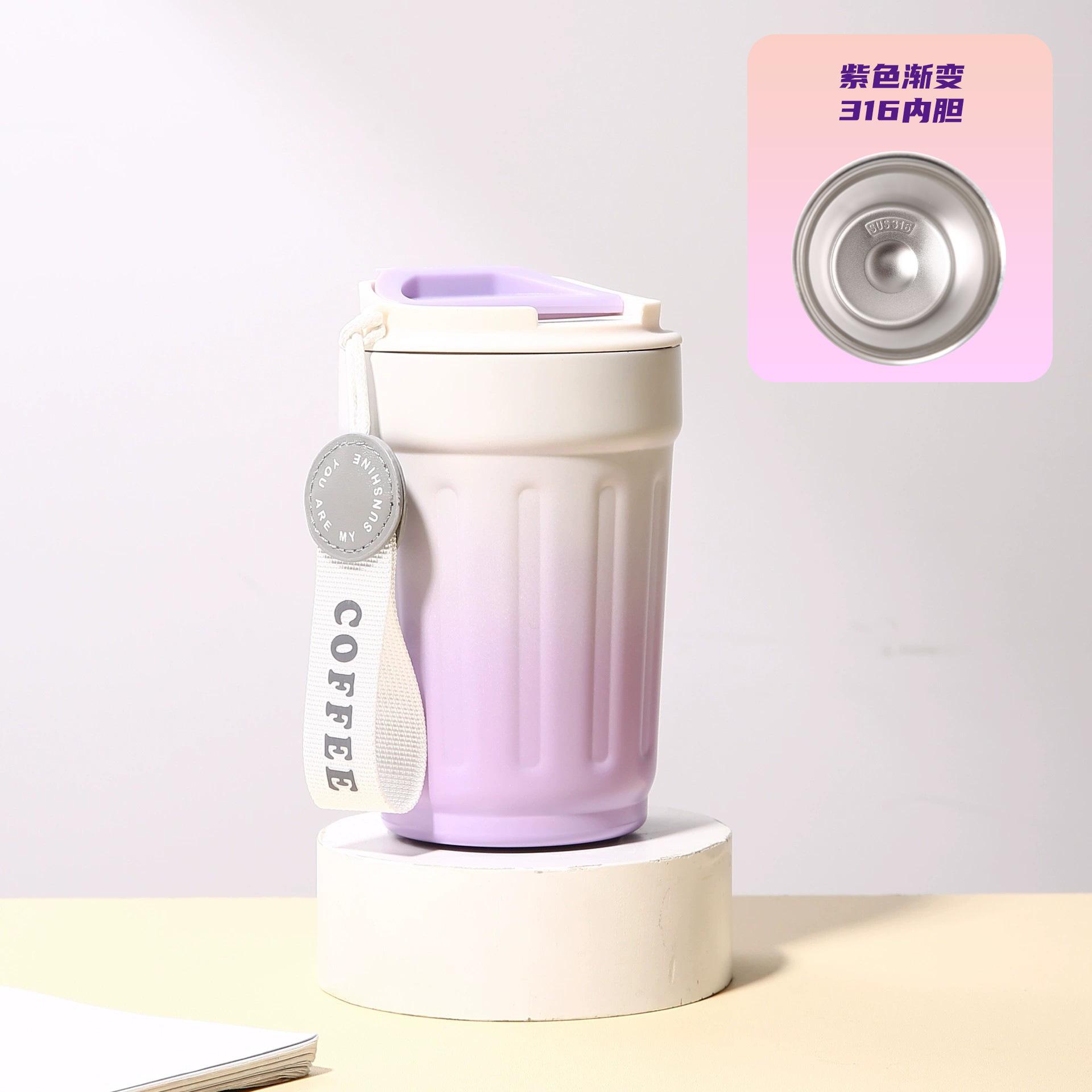 Taza de café con revestimiento de cerámica y taza de vacío de acero inoxidable 316 de alta apariencia con cuerda, taza de agua portátil con gradiente para niña
