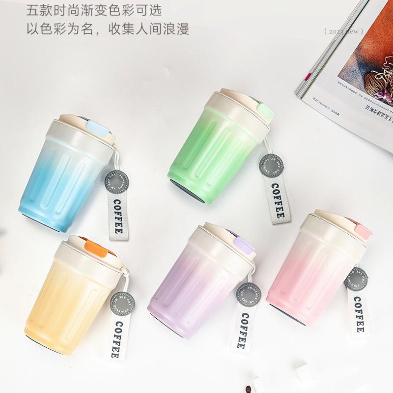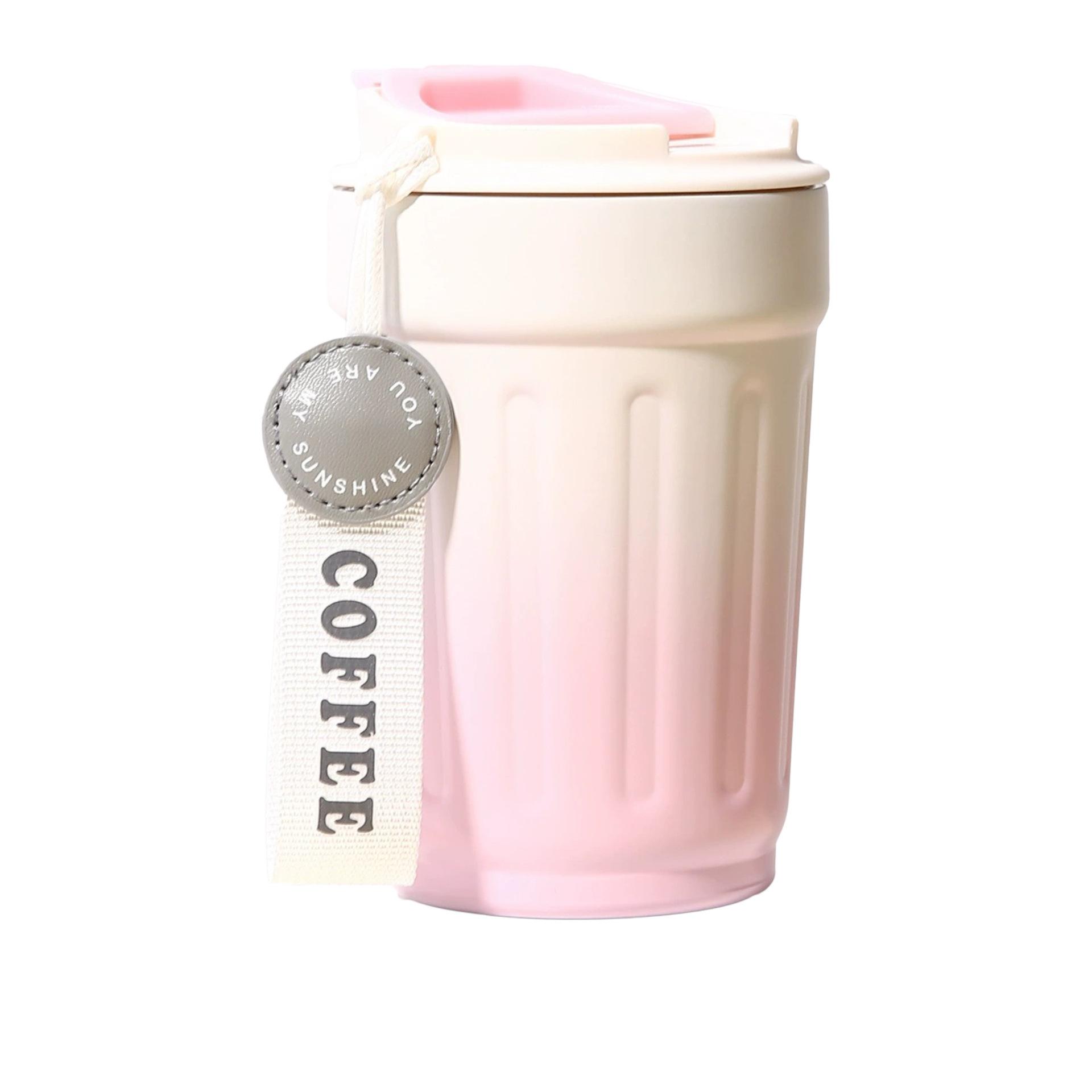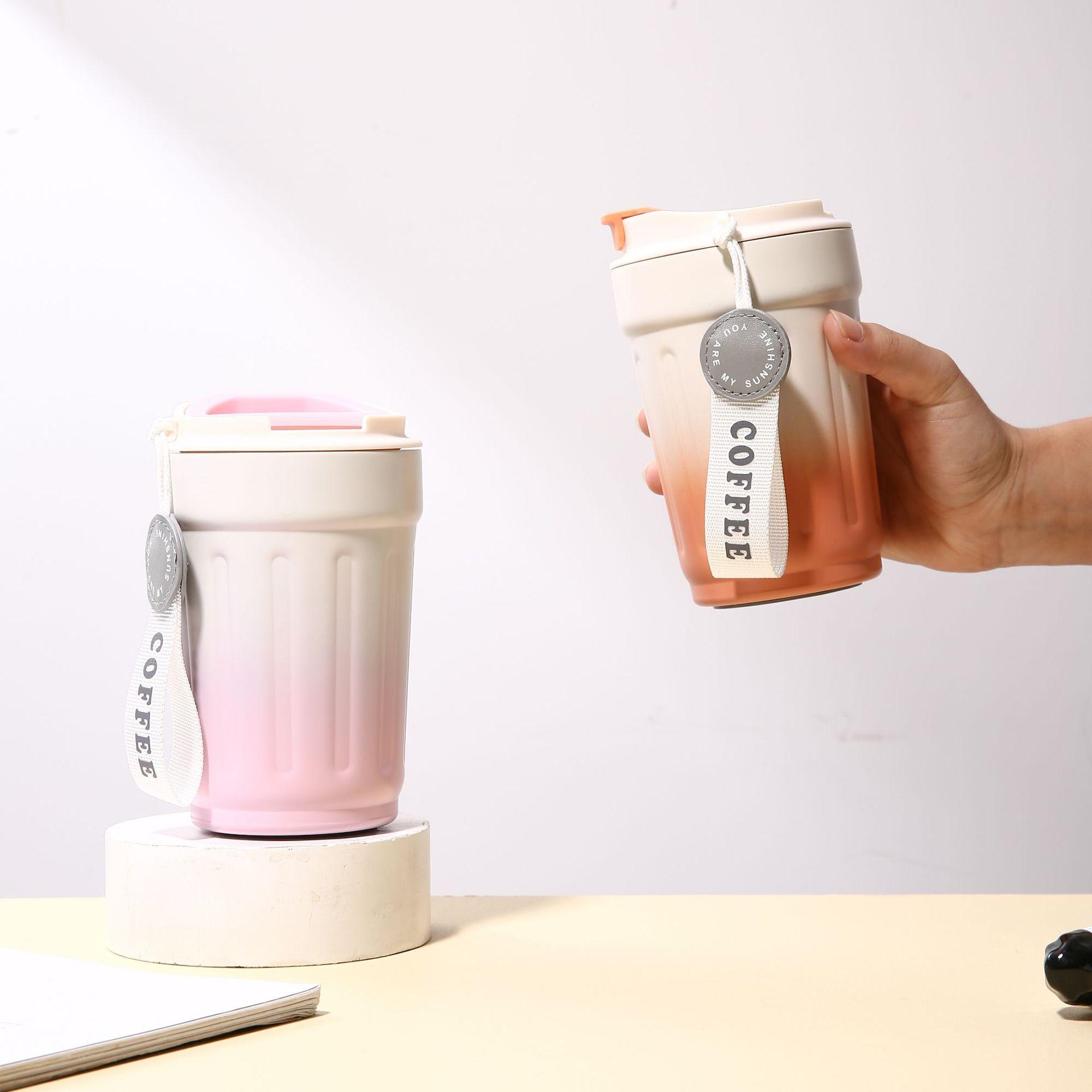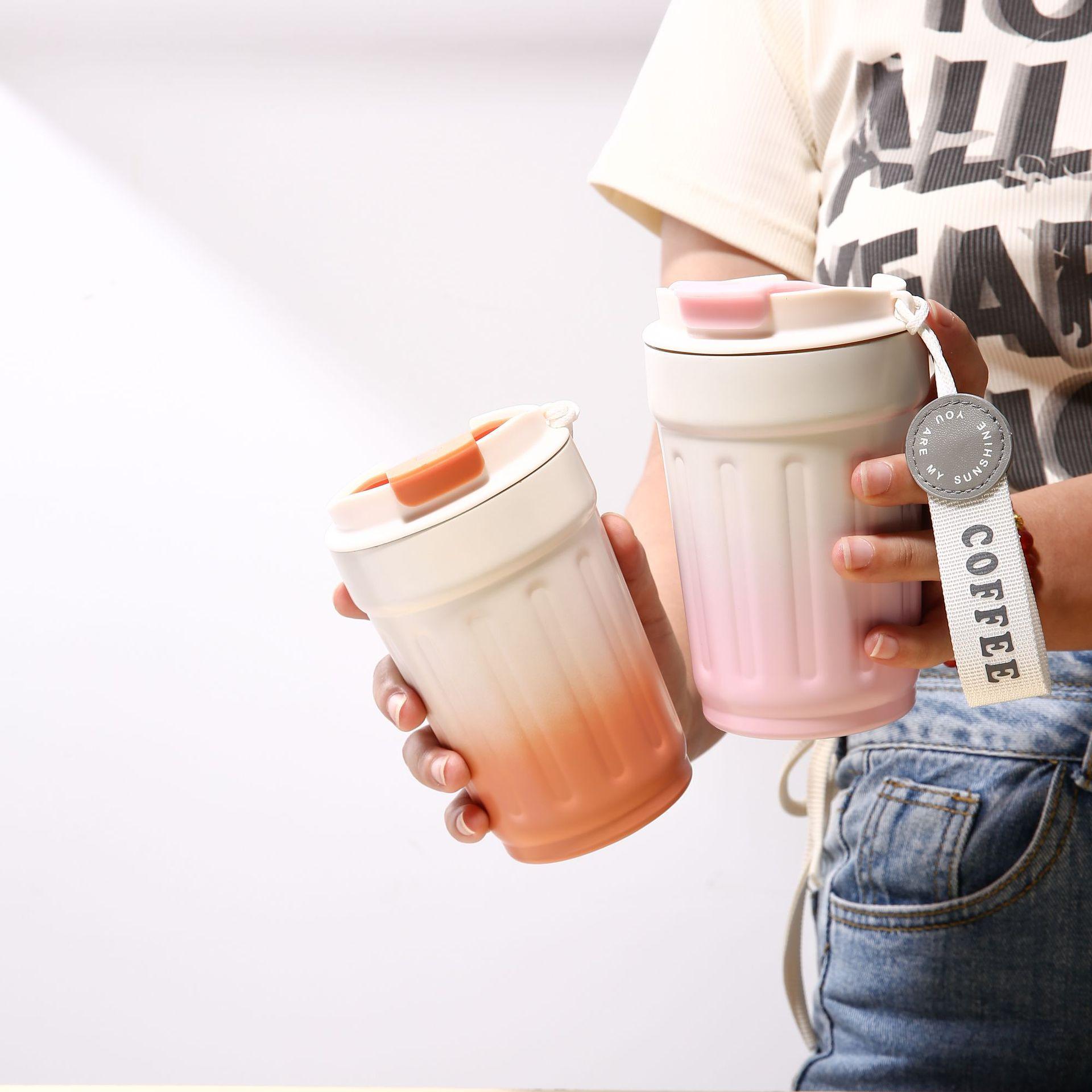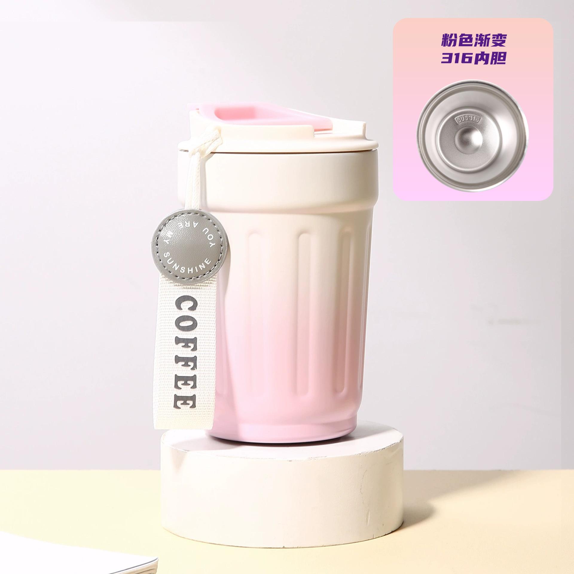 Taza de café con revestimiento de cerámica y taza de vacío de acero inoxidable 316 de alta apariencia con cuerda, taza de agua portátil con gradiente para niña