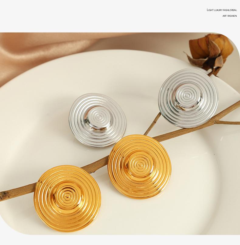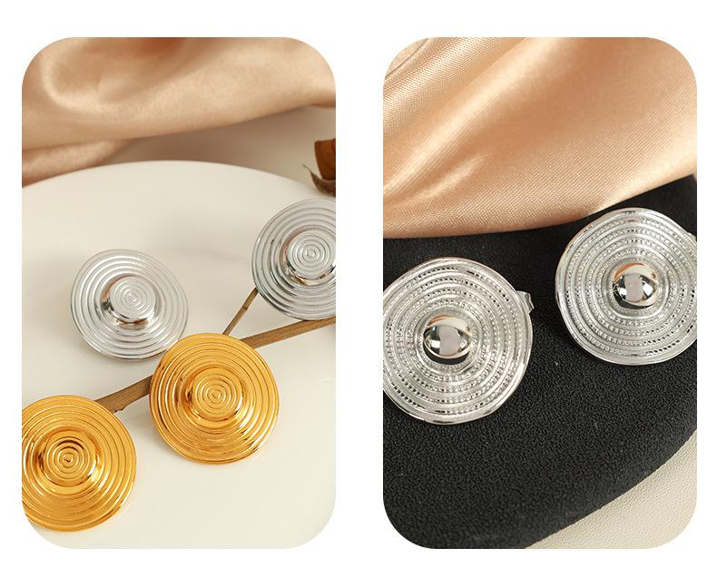 Compra Nuevos pendientes de diseño de nicho con textura circular francesa, elegantes pendientes de gran sentido, pendientes retro. al por mayor en Joom.pro