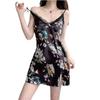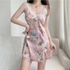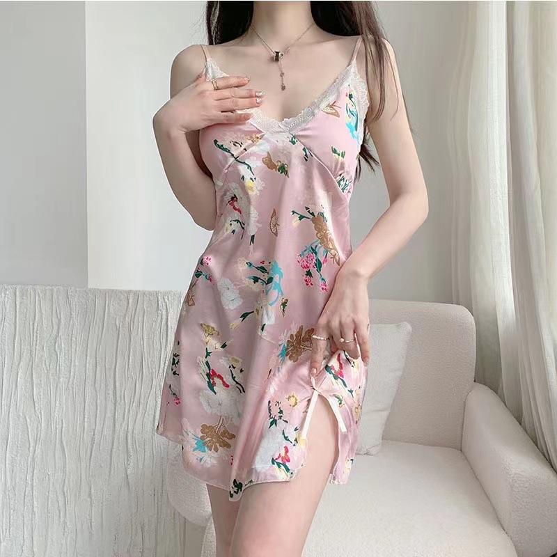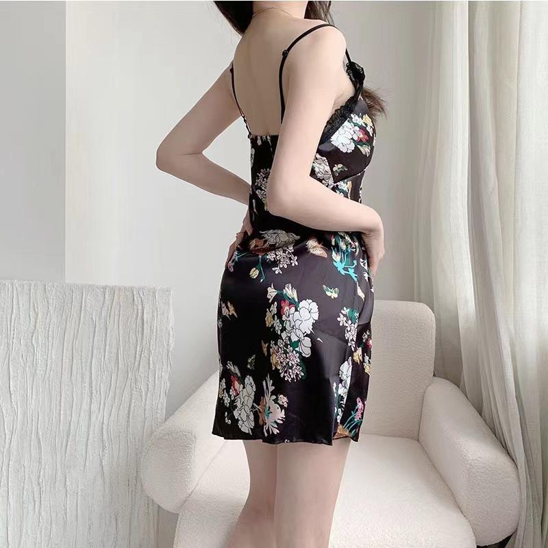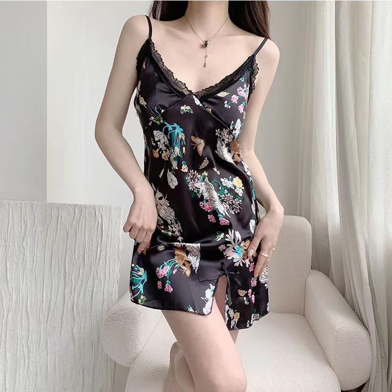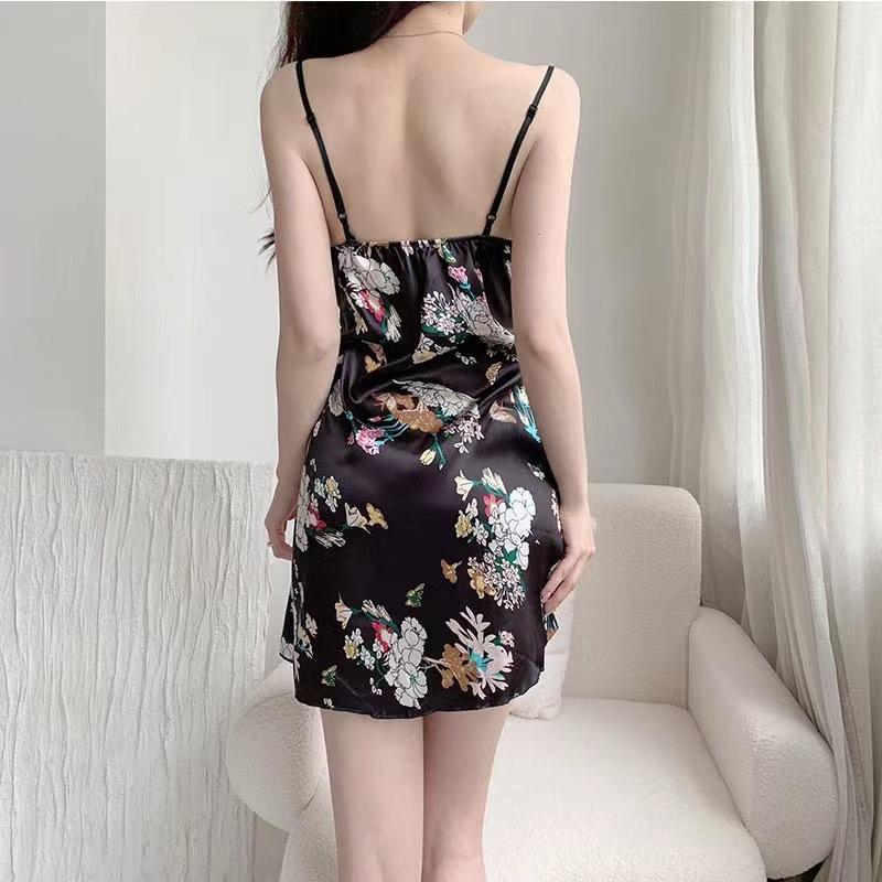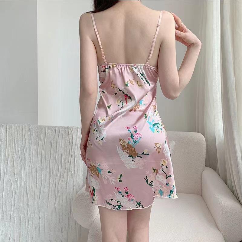 Camisón de tirantes para mujer, pijama sexy de verano, falda estampada de seda helada, con almohadilla para el pecho, ropa para el hogar