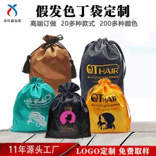 Fabricantes bolsa con cordón personalizada peluca negra bolsa de tela de satén embalaje para almacenamiento de ropa interior bolsa de seda sintética a prueba de polvo