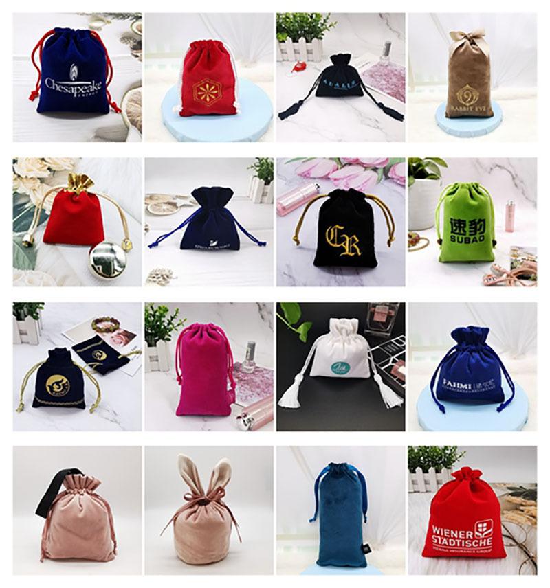 Fabricante de terciopelo collar personalizado anillo bolsa de joyería bolsa de almacenamiento de terciopelo bolsa de terciopelo con cordón para joyería