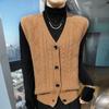 Chaleco de cuello en V personalizable, ropa de abrigo de lana nueva 2024, suéter de cachemira de punto grueso para mujer, otoño e invierno.
