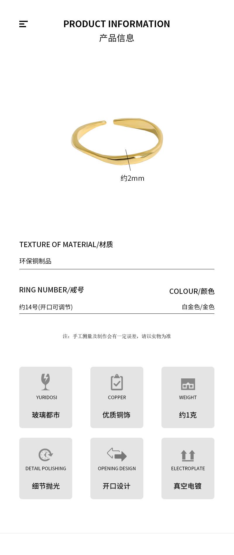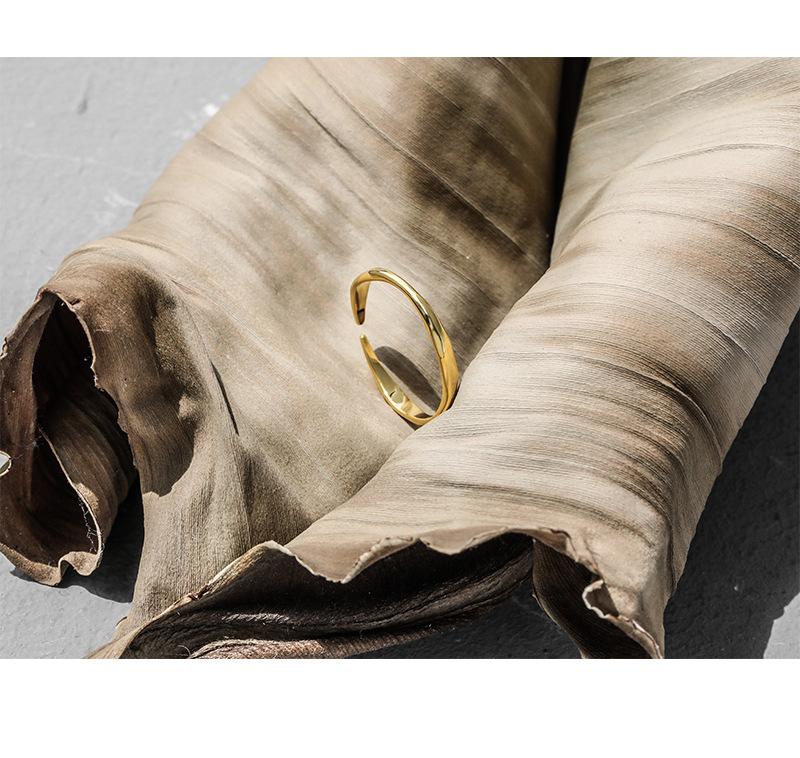 Anillo abierto fino con baño de alta retención de color de latón JAT366, estilo frío, simple y liso, apilable para mujer