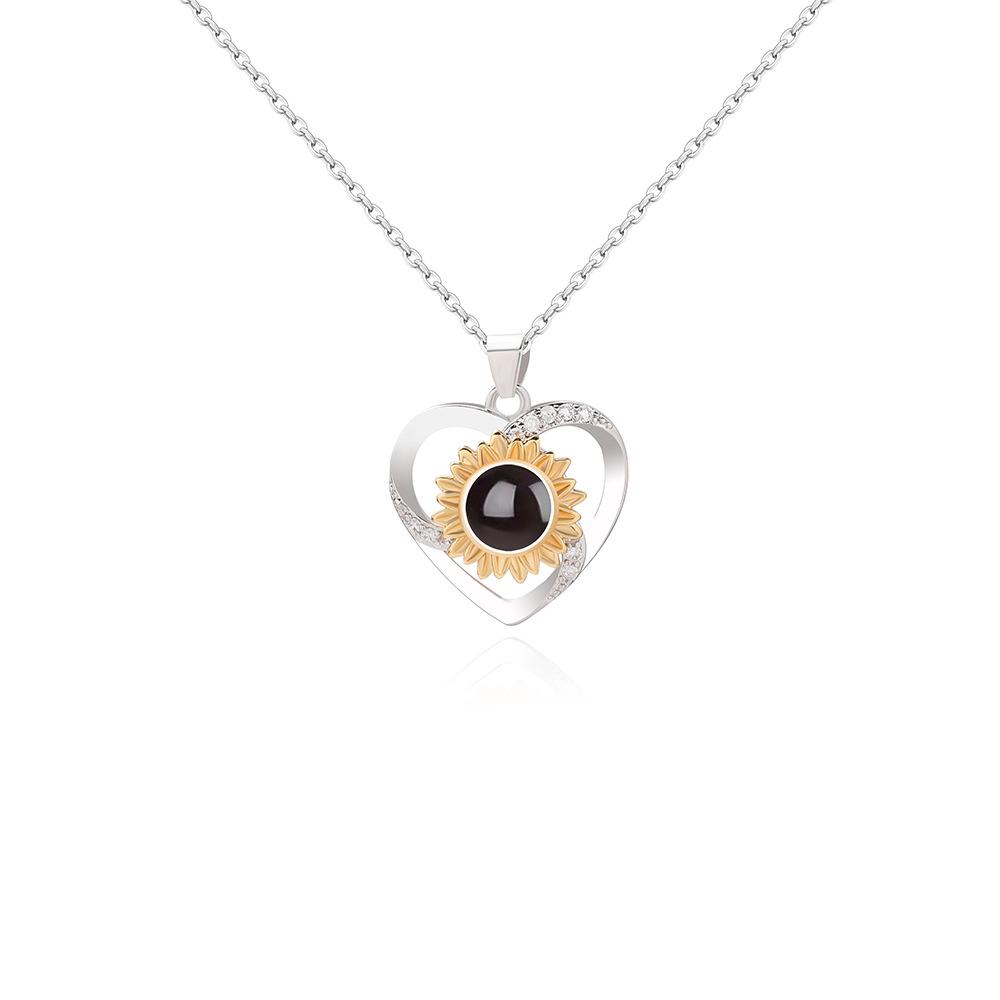 Nuevo collar de girasol giratorio con 100 idiomas "Te amo", recuerdos de amor, cadena de clavícula con personalidad