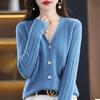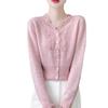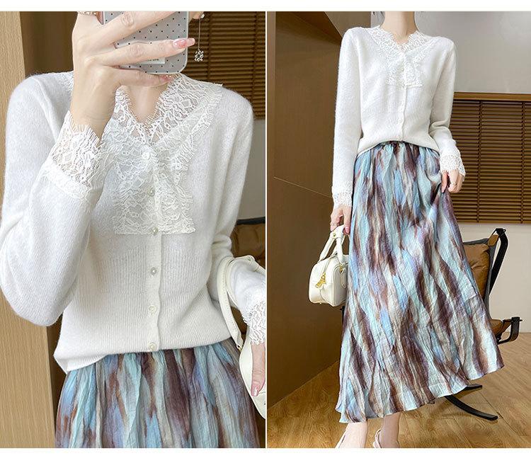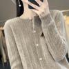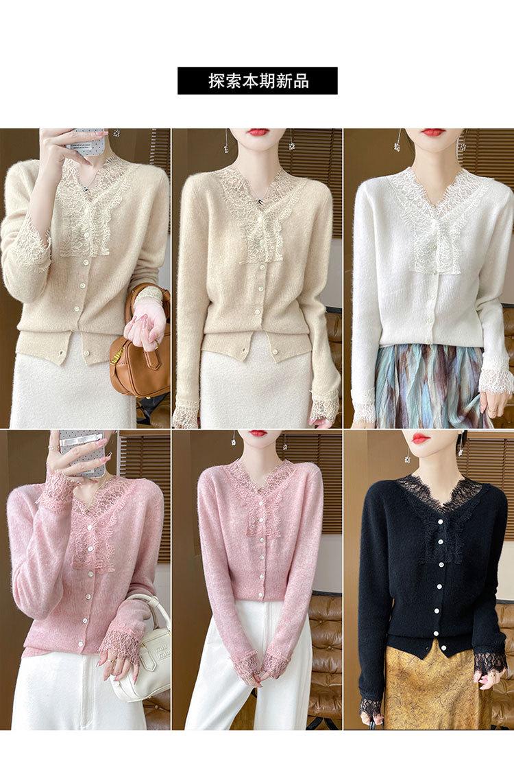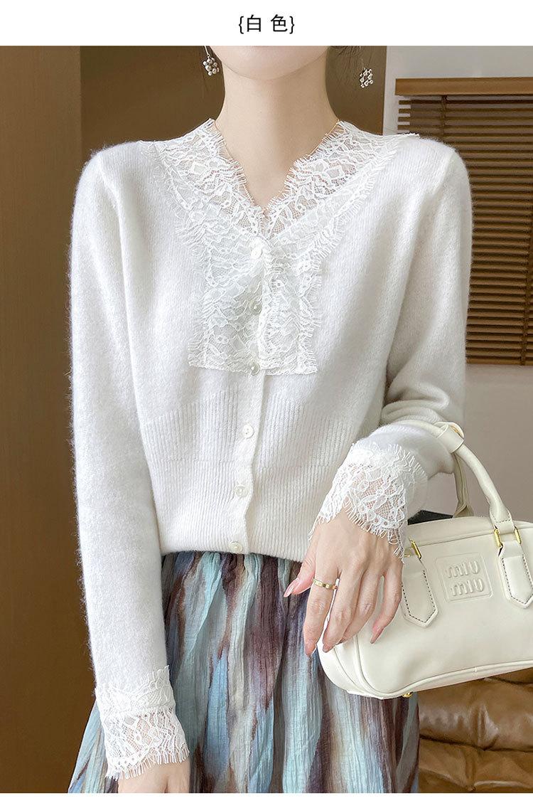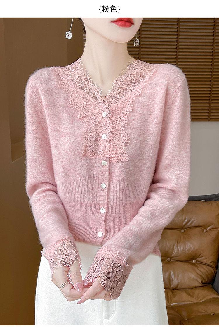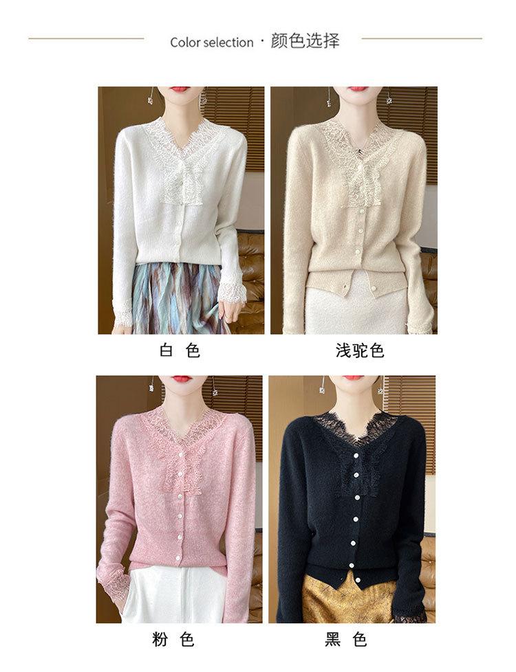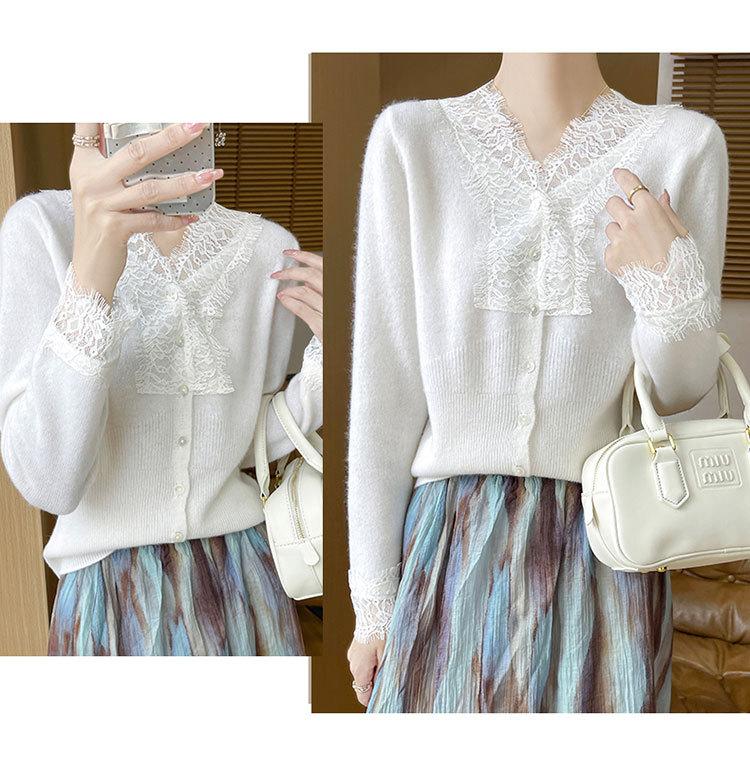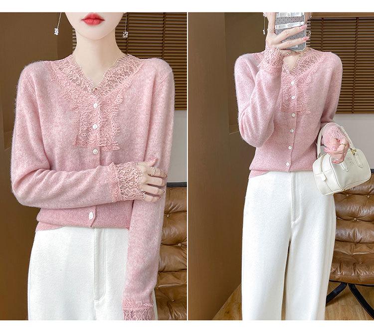 Cárdigan de Cachemira Pura 100 con Encaje de Cuello en V Calado Otoño e Invierno Suéter de Manga Larga Suelto Suéter de Lana Chaqueta Tejida Trendy