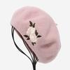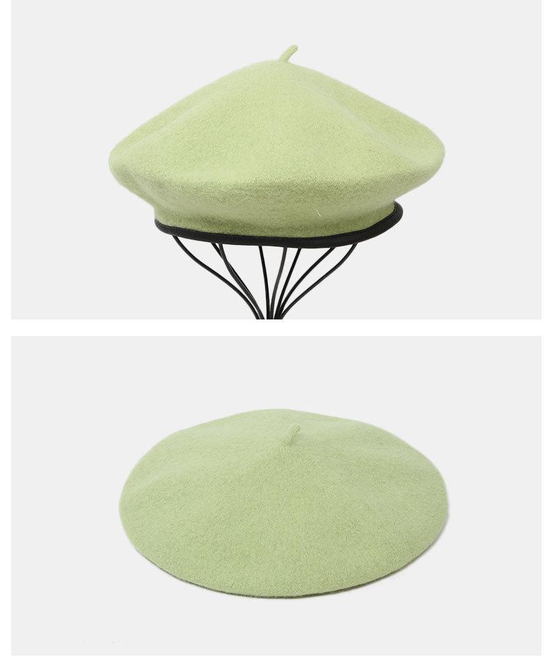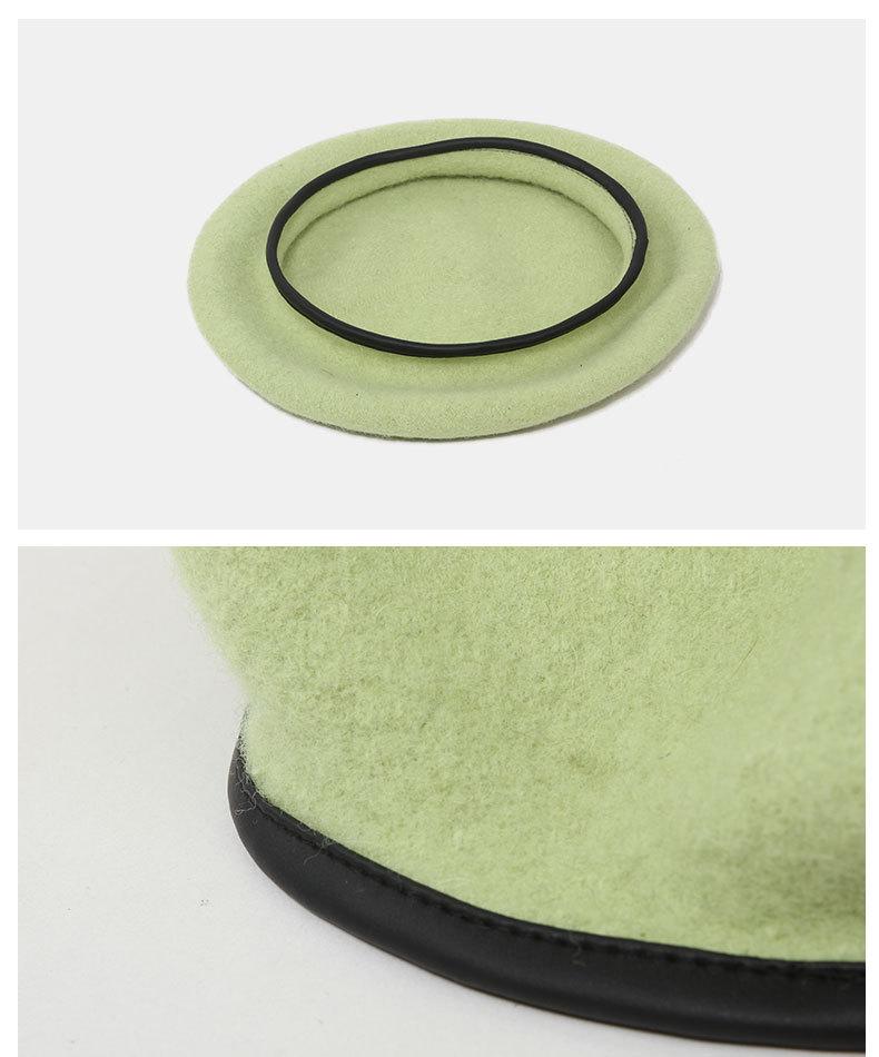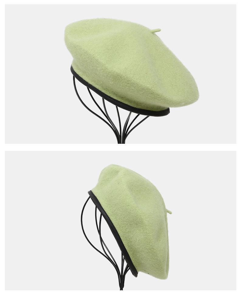 Boina de Lana Vintage Otoño e Invierno para Mujer Color Verde Color Negro Borde de Bolsa de Cuero Sombrero de Lana Verde Claro