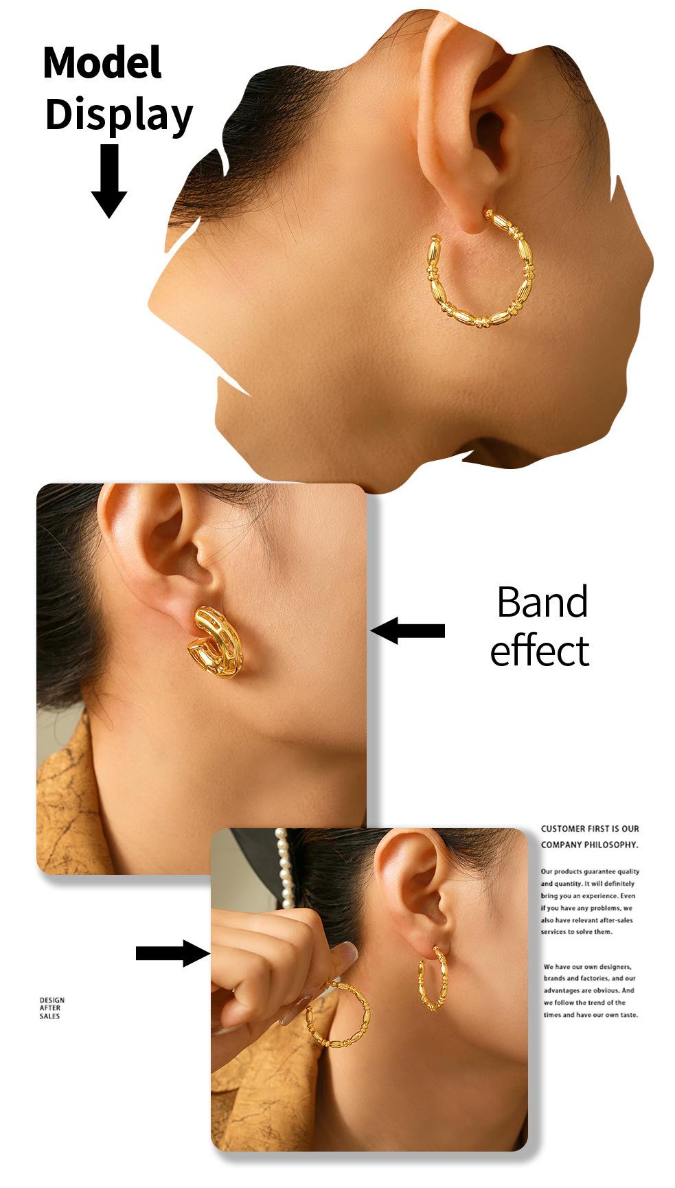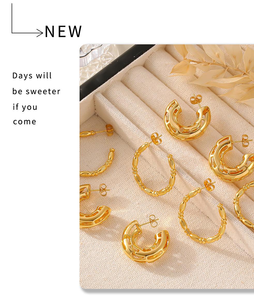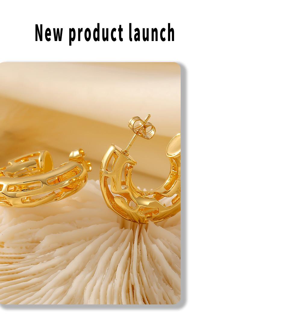 Pendientes de moda transfronteriza con forma de C, pendientes de cobre chapados en oro, joyería de diseño de alta gama al por mayor.