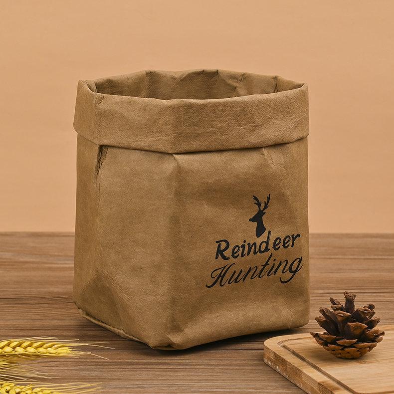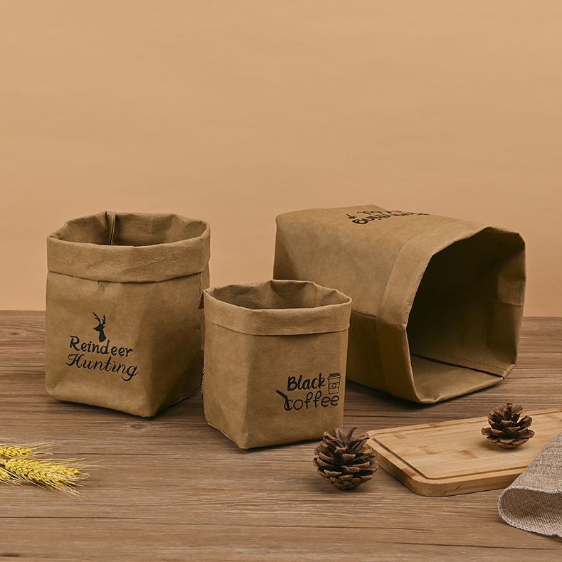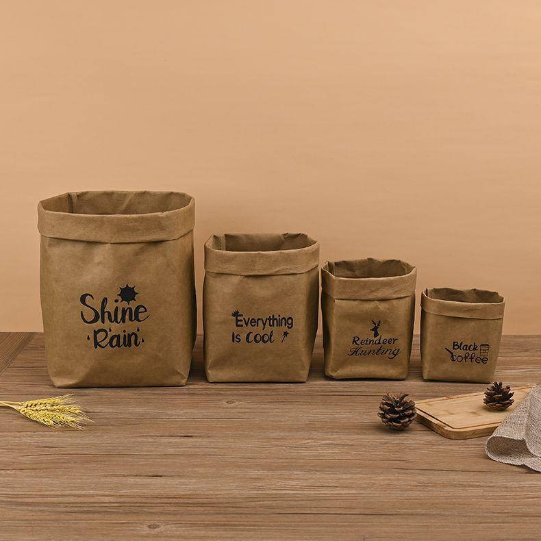Bolsa de almacenamiento de papel kraft lavable, bolsa de embalaje de base cuadrada personalizada, papel de embalaje, bolsa de laca espesa imprimible, Ins Wind