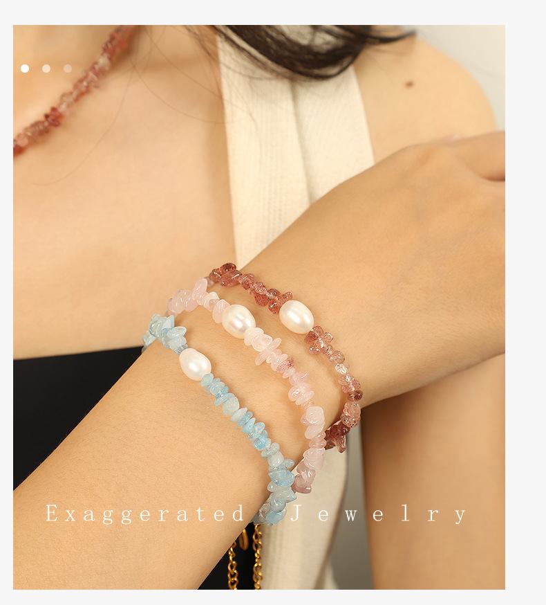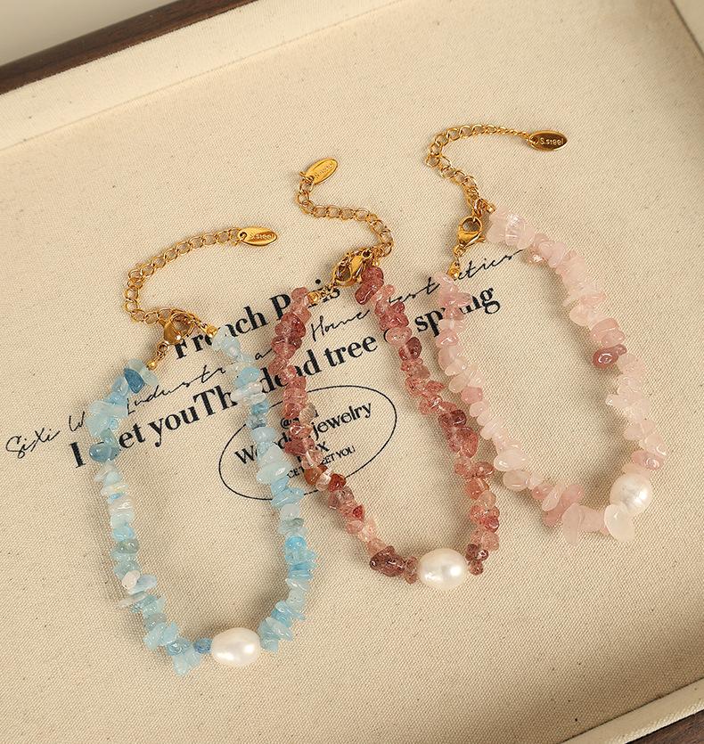 Sl66 dark pink natural stone gold bracelet, Sl66 light pink natural stone gold bracelet, Sl66 light blue natur...