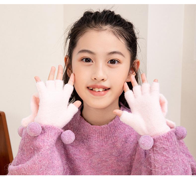 Children's half finger flip gloves pink