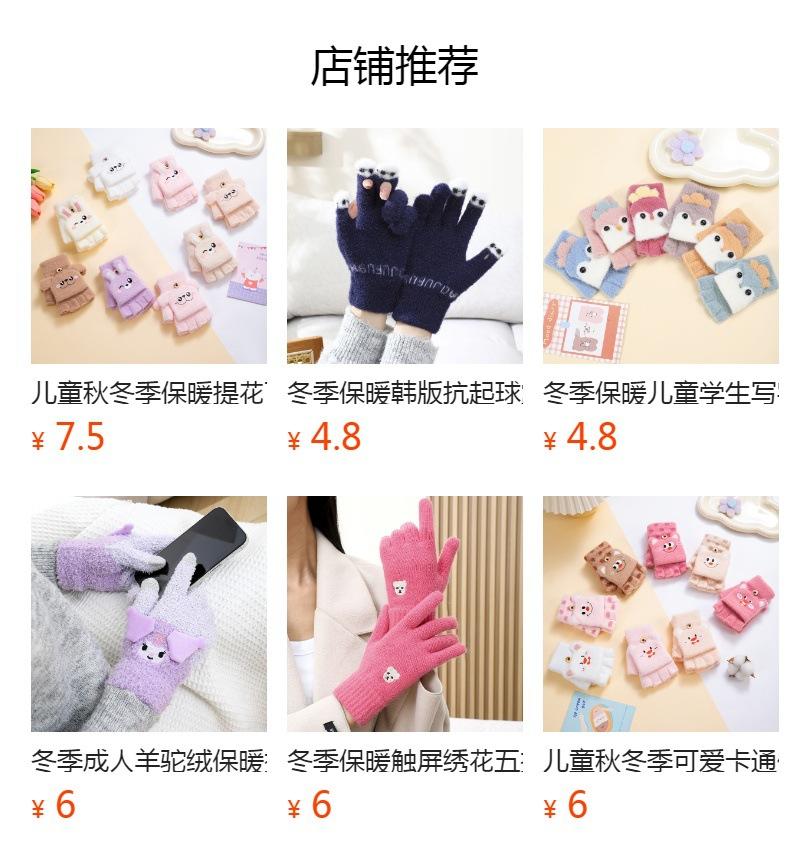 Cute cartoon warm touch screen fresh half finger flip gloves