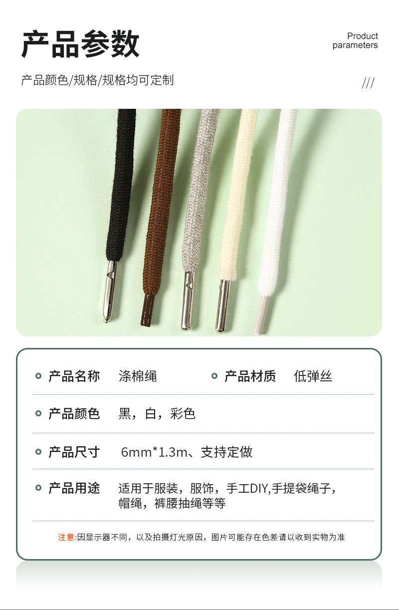 Cuerda para sombrero de suéter casual de 6 mm de color, encriptación de poliéster algodón, cuerda para cintura de pantalones, cordón para pantalones deportivos, punta de metal, accesorios de ropa