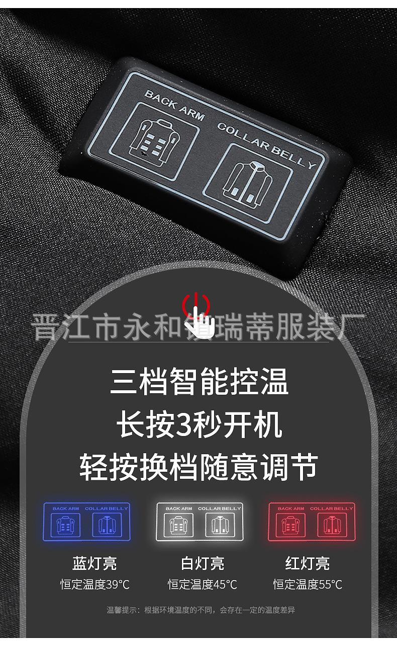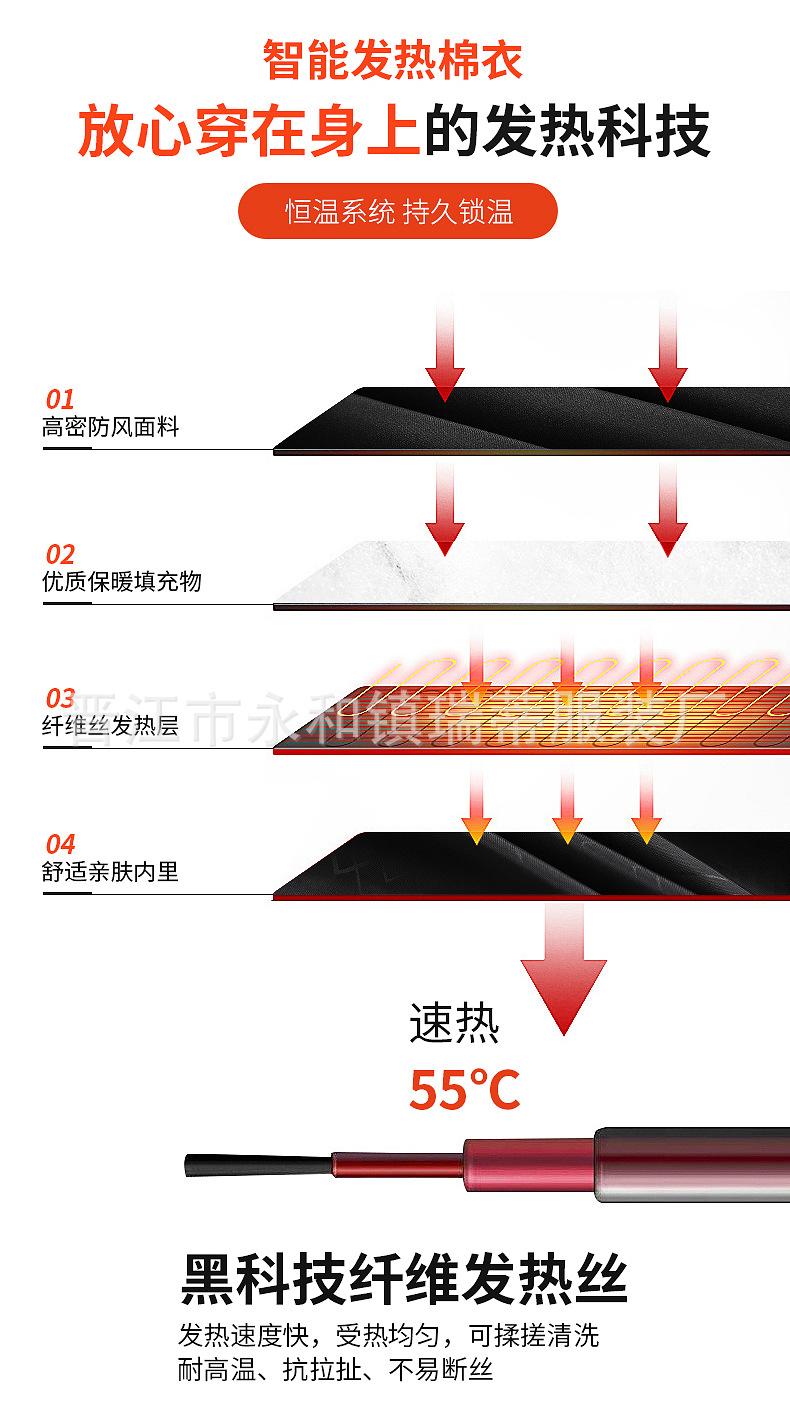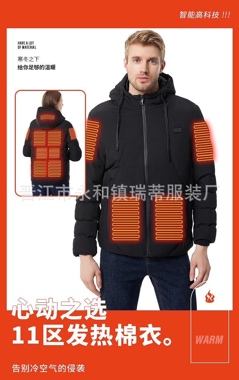 Ropa calefactora inteligente transfronteriza, nueva zona de control doble 11, ropa calefactora acolchada de algodón, temperatura constante, ropa calefactora cálida, venta directa de fábrica