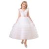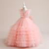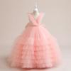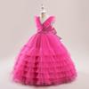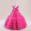 Vestido infantil europeo y americano de amazon para niños medianos y grandes, vestido de princesa de pastel de malla con cuello en V, disfraz de actuación de piano para niña