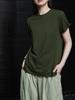 Compra Camiseta de manga corta de algodón verde para mujer, novedad de verano 2024, estilo retro americano, holgada, con hombros descubiertos y combinable. al por mayor en Joom.pro