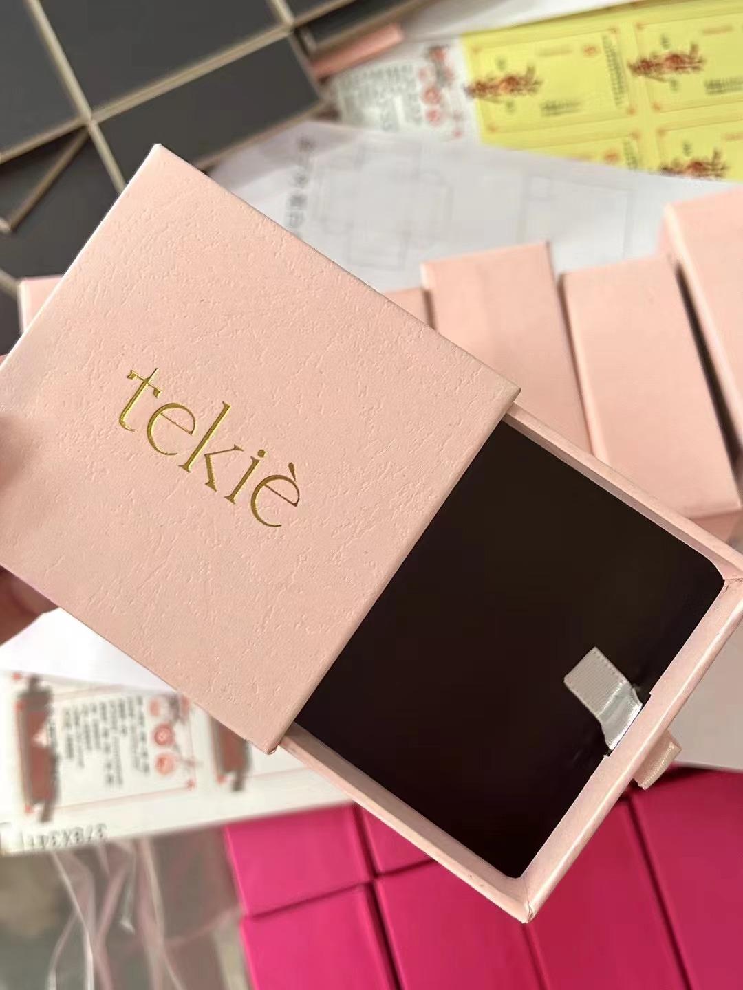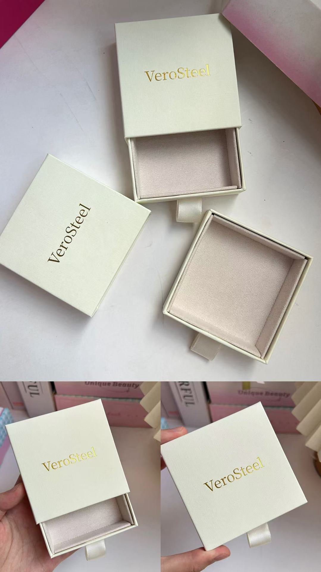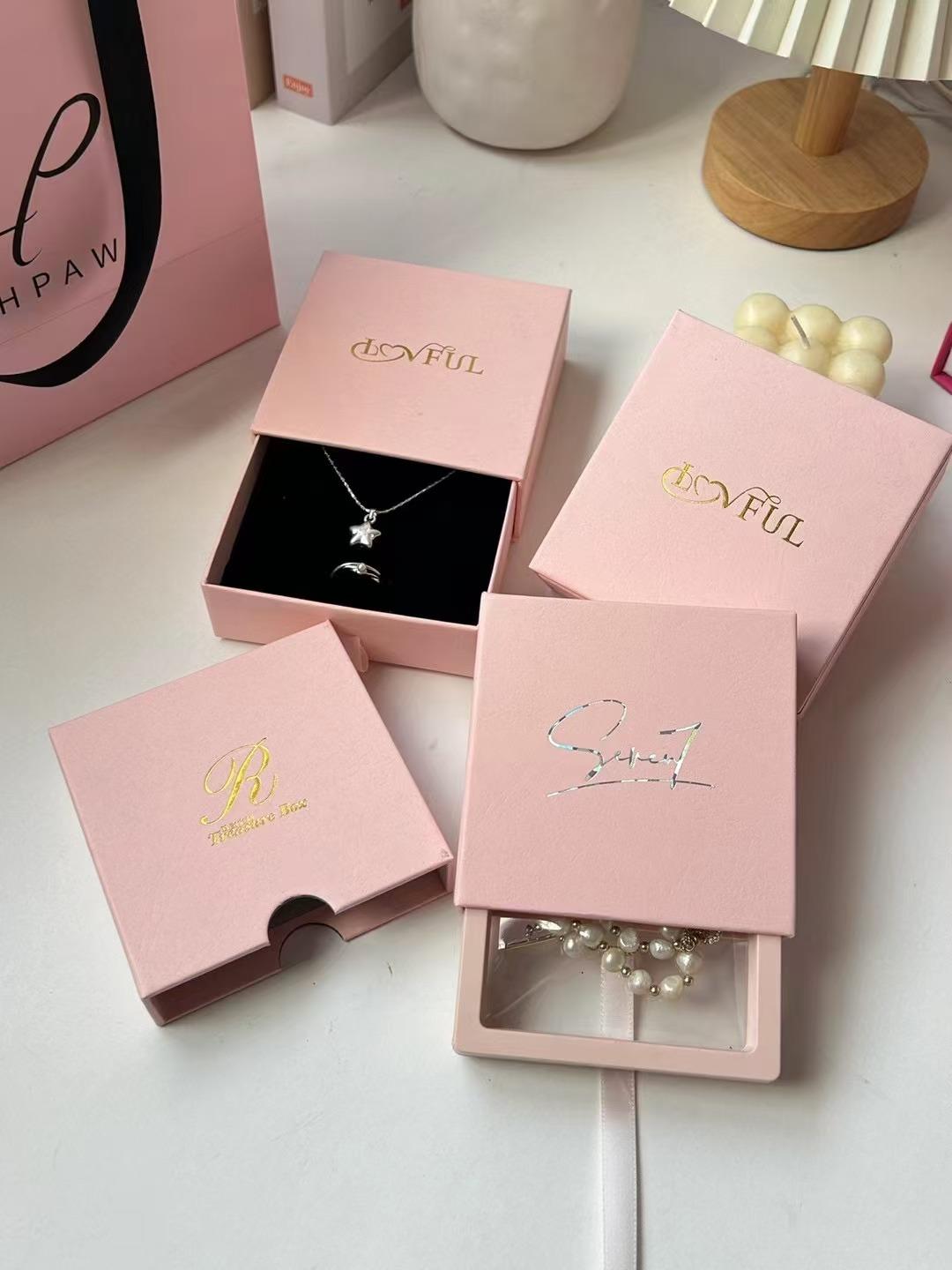 Caja de Empaque de Pulsera de Cristal Empaque de Exhibición de Collar Aretes Papelería Empaque de Anillo Caja de Papel de Regalo con Logotipo en Lámina Dorada