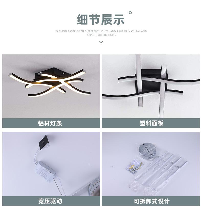 Lámpara de Techo Ondulada LED Negra Lámpara de Sala de Estar Tira Lámpara de Techo para Dormitorio Exportación Personalizada Accesorios de Iluminación para el Hogar