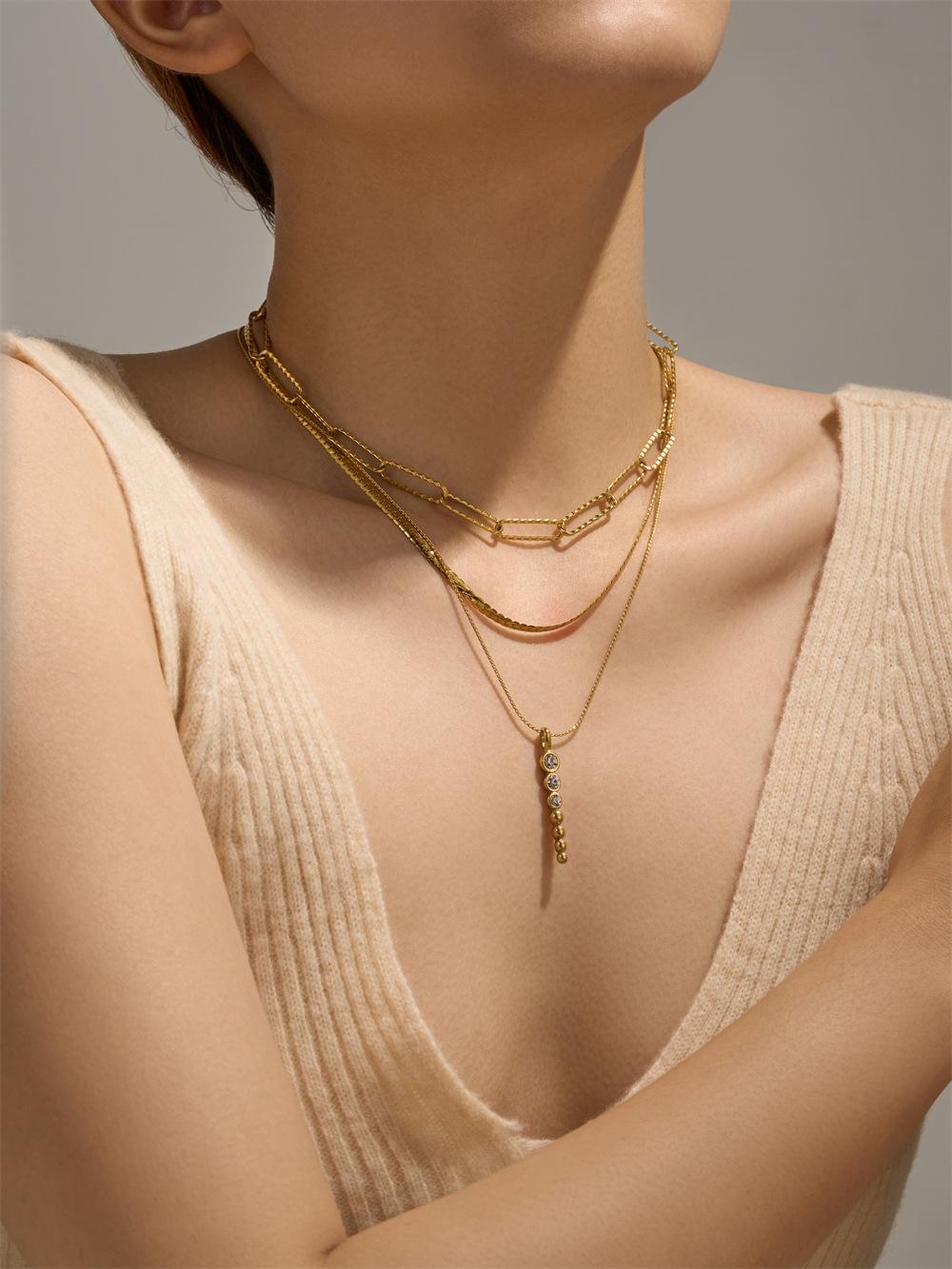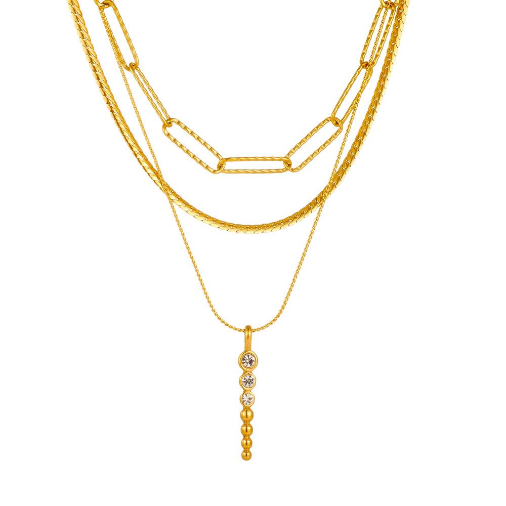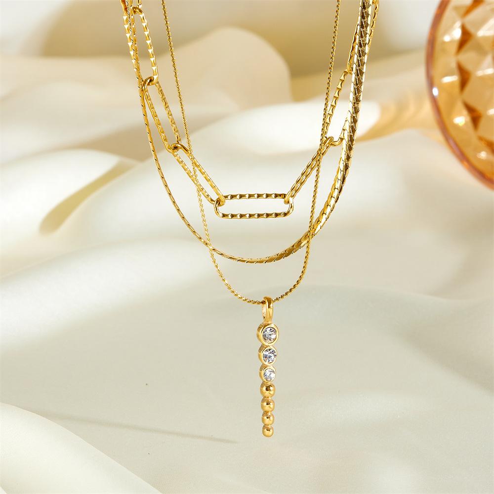 Moda Transfronteriza Europea y Americana Lujo Ligero Simple Collar Multicapa con Incrustaciones de Diamantes Diseño Nicho para Mujer Collar de Acero de Titanio de Alta Gama