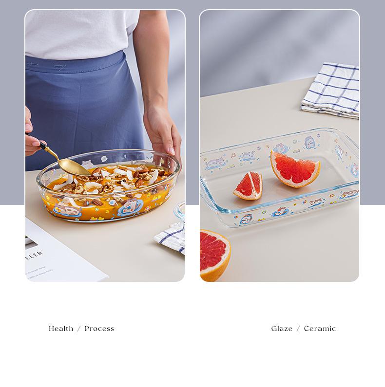 Utensilios para hornear de vidrio rectangulares, placa ovalada resistente a altas temperaturas, horno microondas, plato de cena, plato de pescado a la parrilla doméstico Advanced Sense