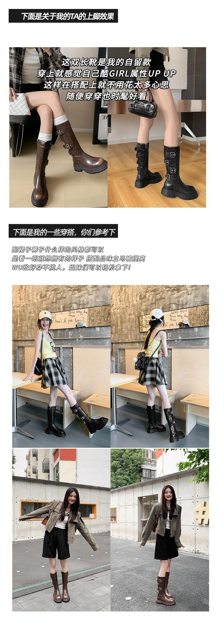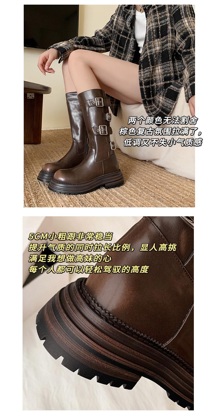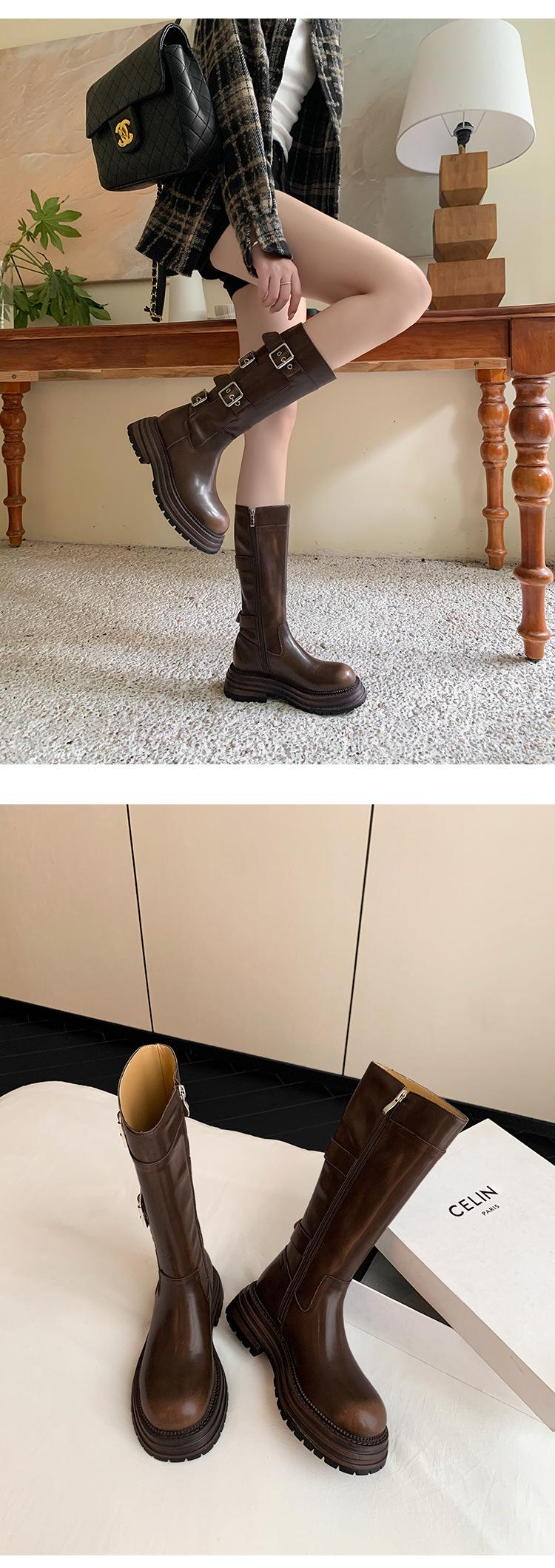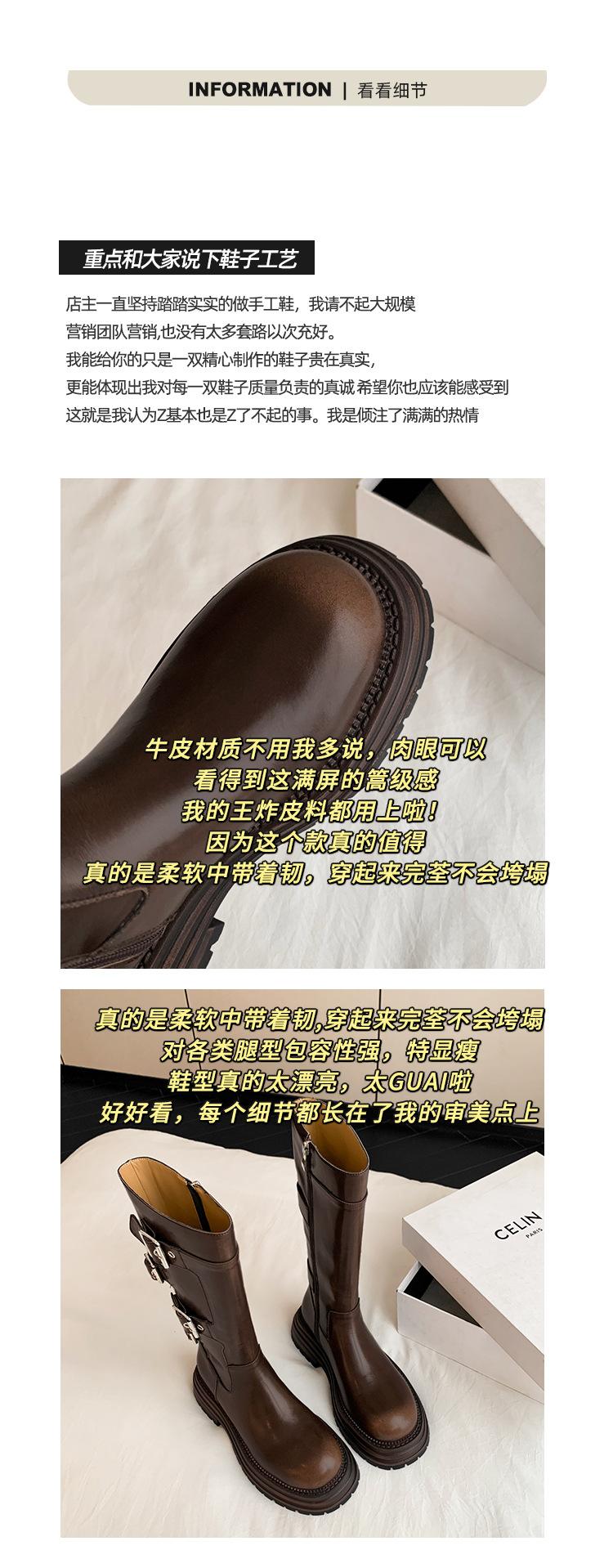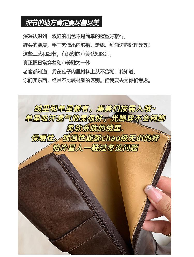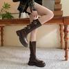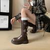 Botas Altas de Caña Alta Estilo Universitario Maillard de Fat Sister de Punta Redonda y Suela Gruesa Otoño 2024 Adelgazantes de Pierna Botas de Caballero Rectas
