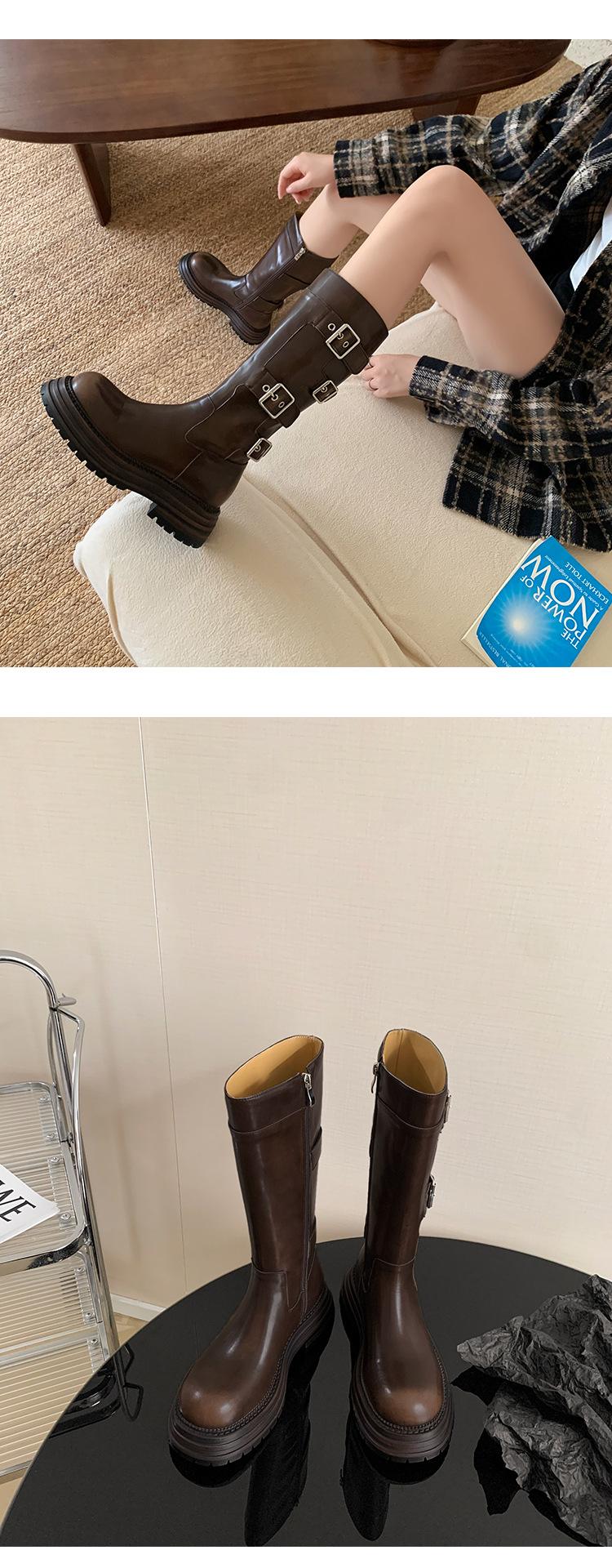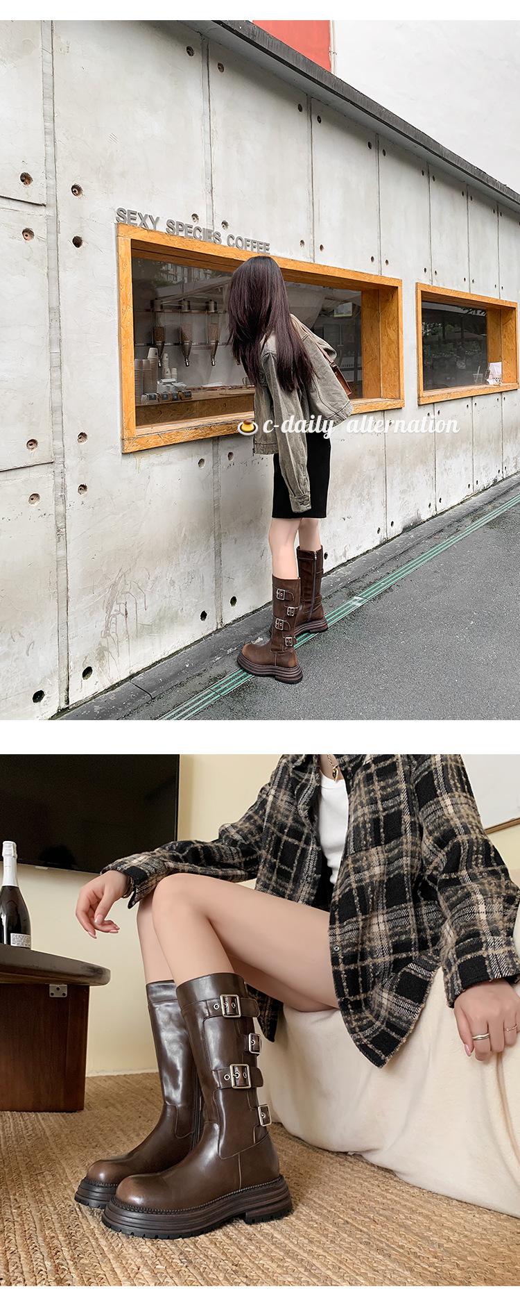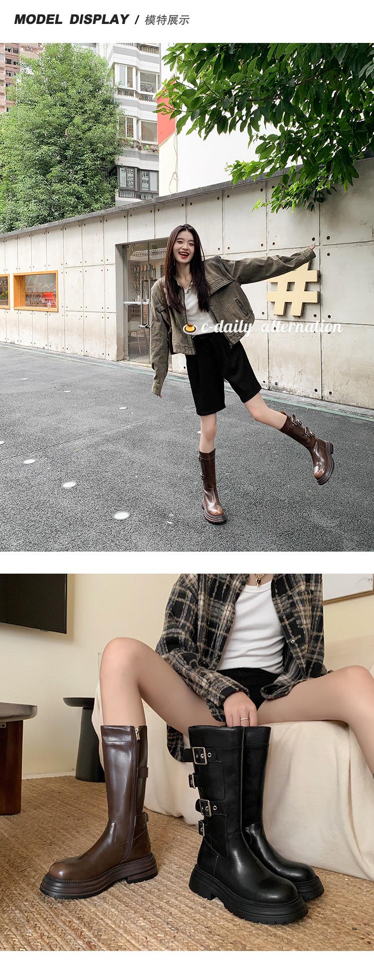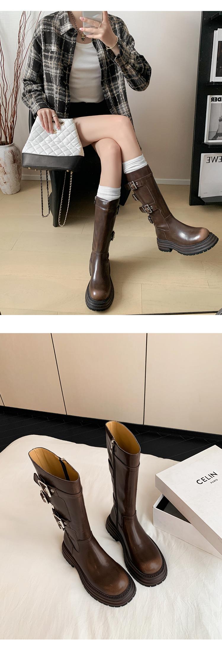 Botas Altas de Caña Alta Estilo Universitario Maillard de Fat Sister de Punta Redonda y Suela Gruesa Otoño 2024 Adelgazantes de Pierna Botas de Caballero Rectas