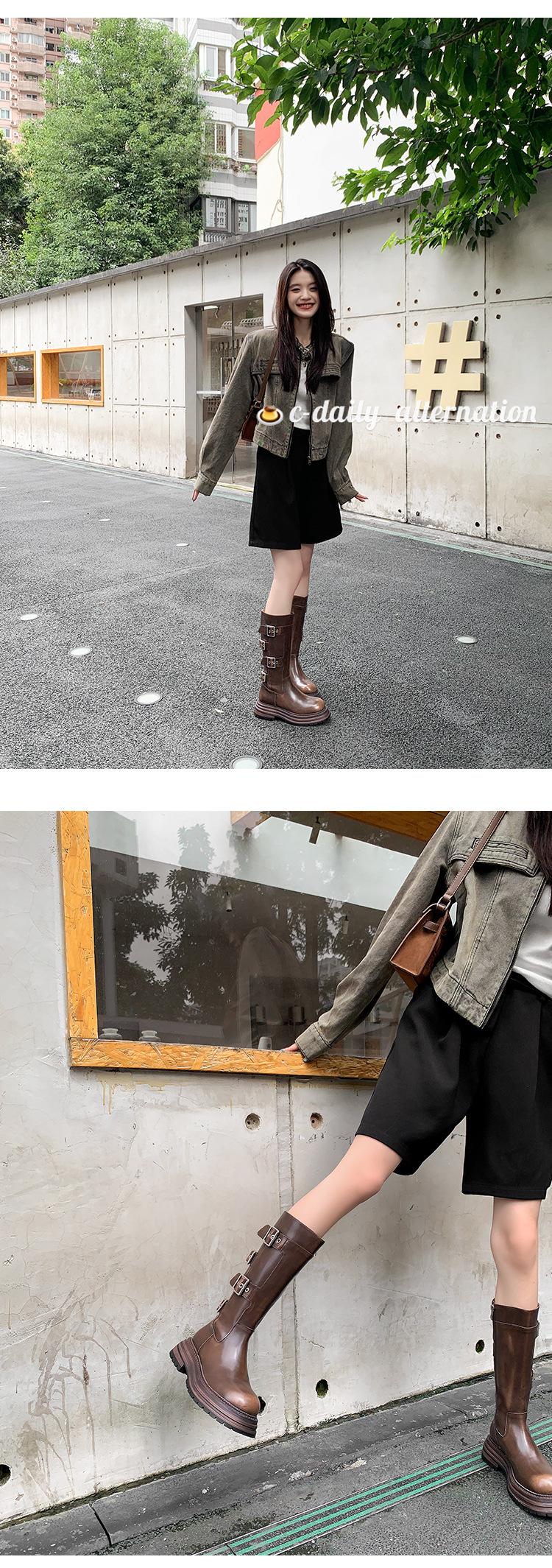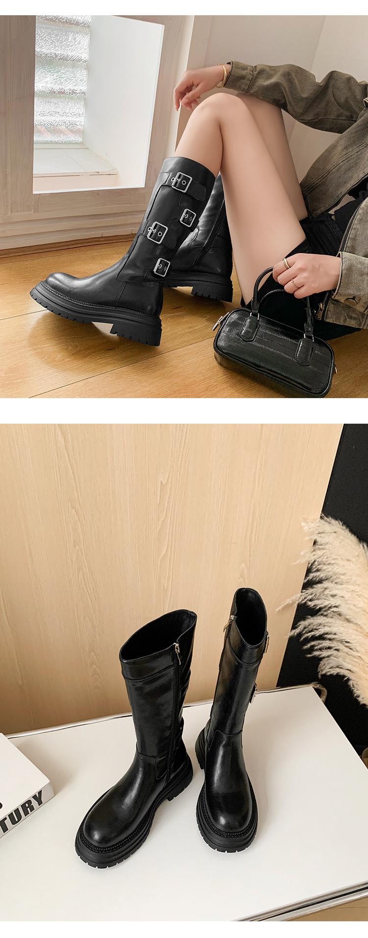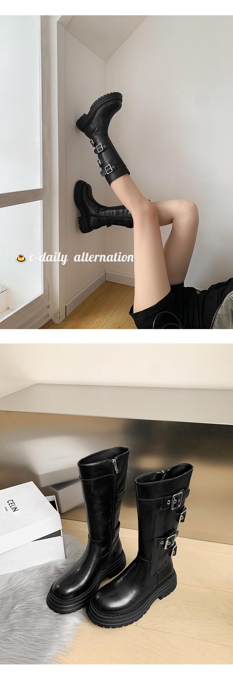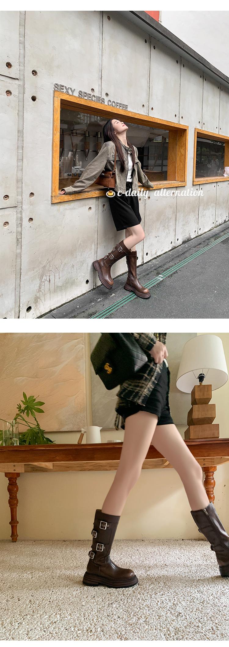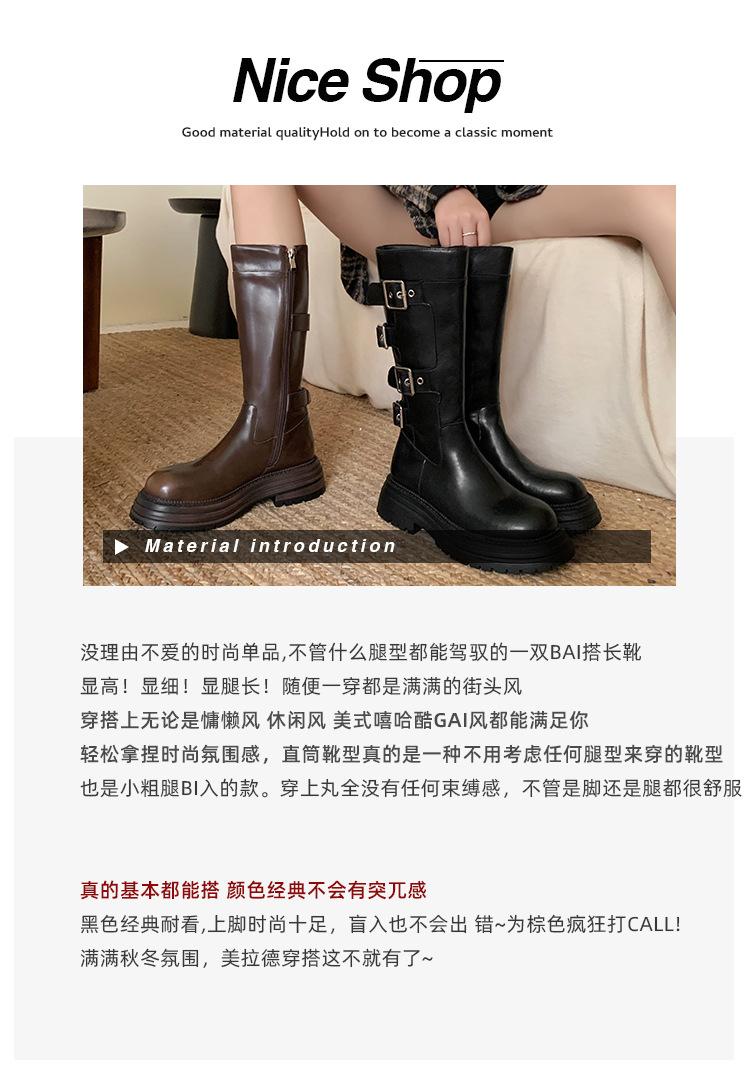 Botas Altas de Caña Alta Estilo Universitario Maillard de Fat Sister de Punta Redonda y Suela Gruesa Otoño 2024 Adelgazantes de Pierna Botas de Caballero Rectas