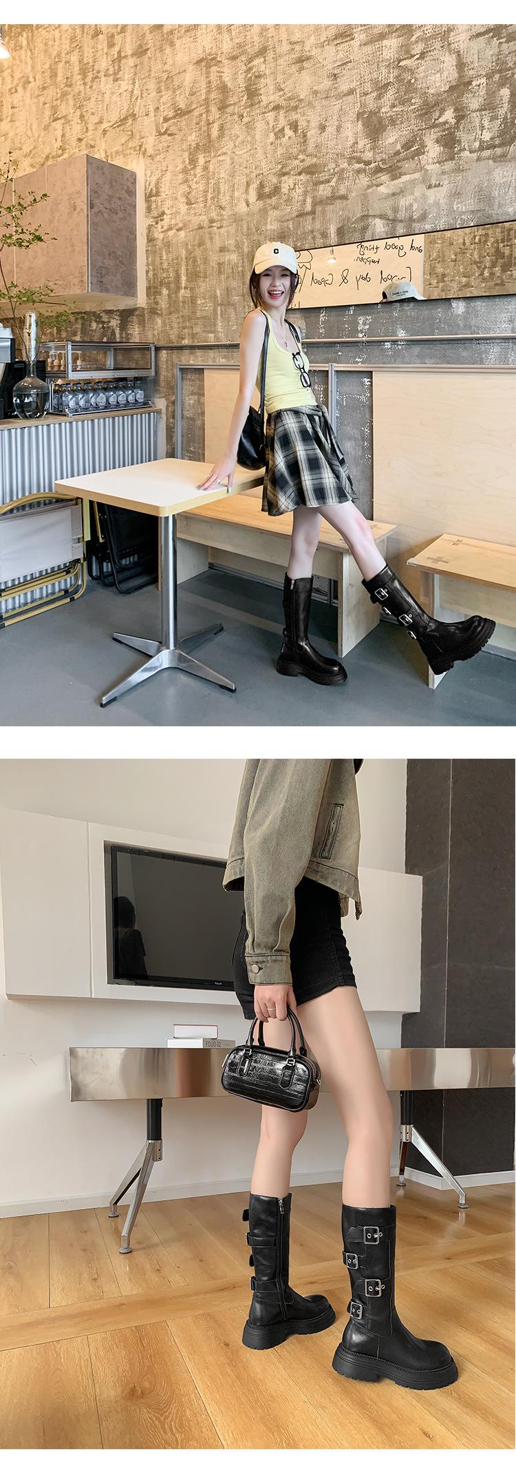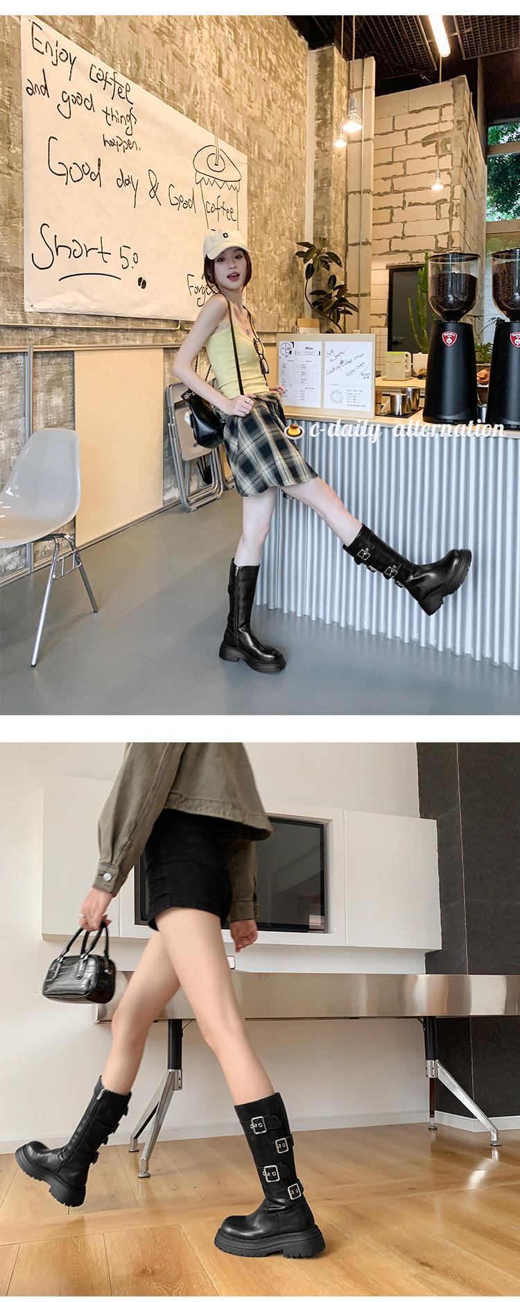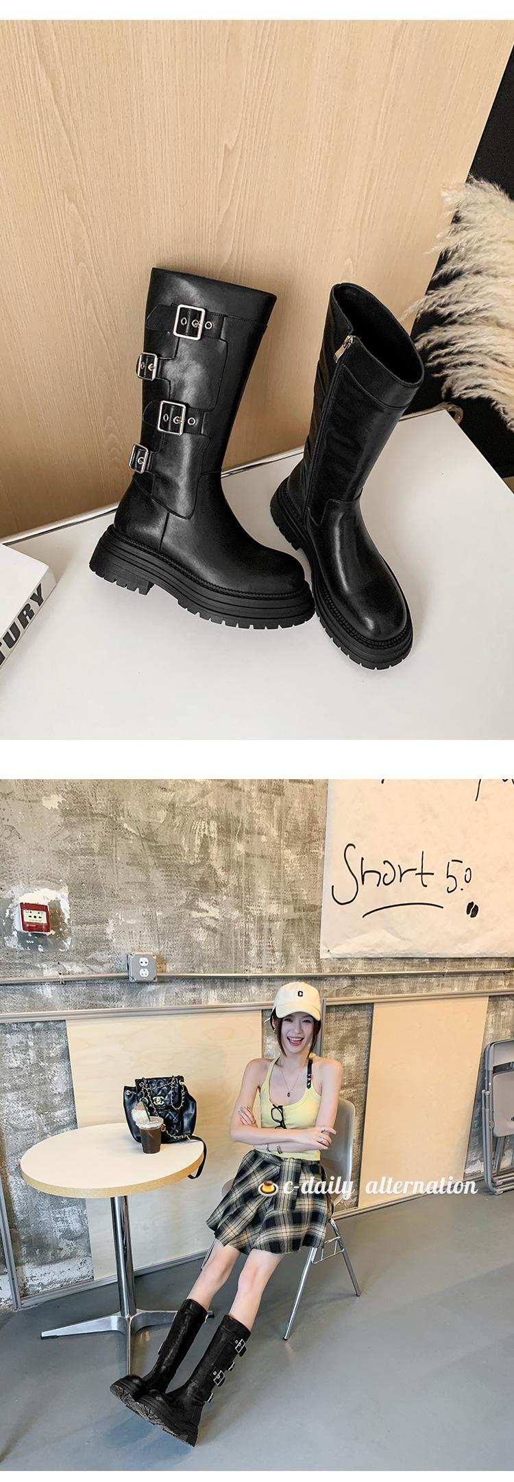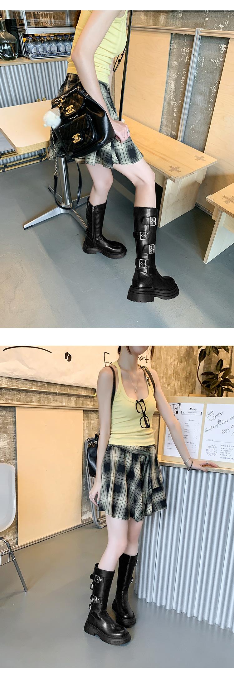 Botas Altas de Caña Alta Estilo Universitario Maillard de Fat Sister de Punta Redonda y Suela Gruesa Otoño 2024 Adelgazantes de Pierna Botas de Caballero Rectas