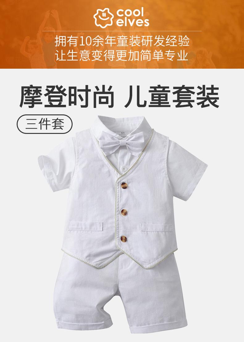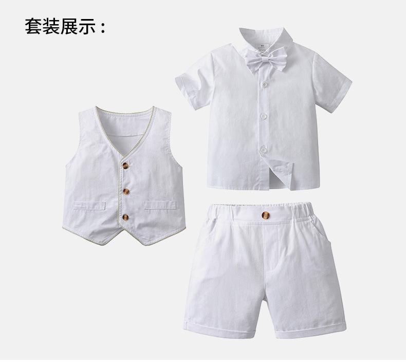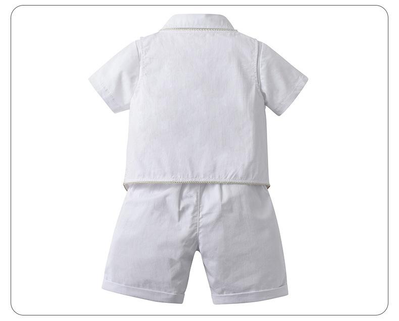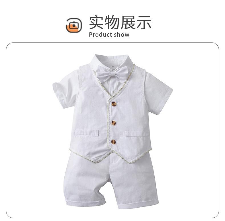 Ropa infantil transfronteriza, venta al por mayor, chaleco de verano de manga corta, ropa infantil de tres piezas, vestido blanco para bebé, traje para niño