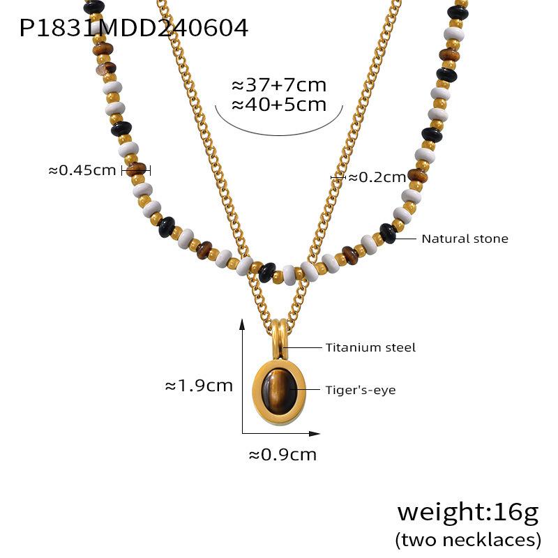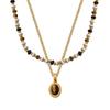 Collar con colgante ovalado de ojo de tigre con cuentas de piedra natural para mujer, estilo nicho, ligero, de lujo, vintage, de doble capa, con cadena de clavícula de acero y titanio superpuesta.