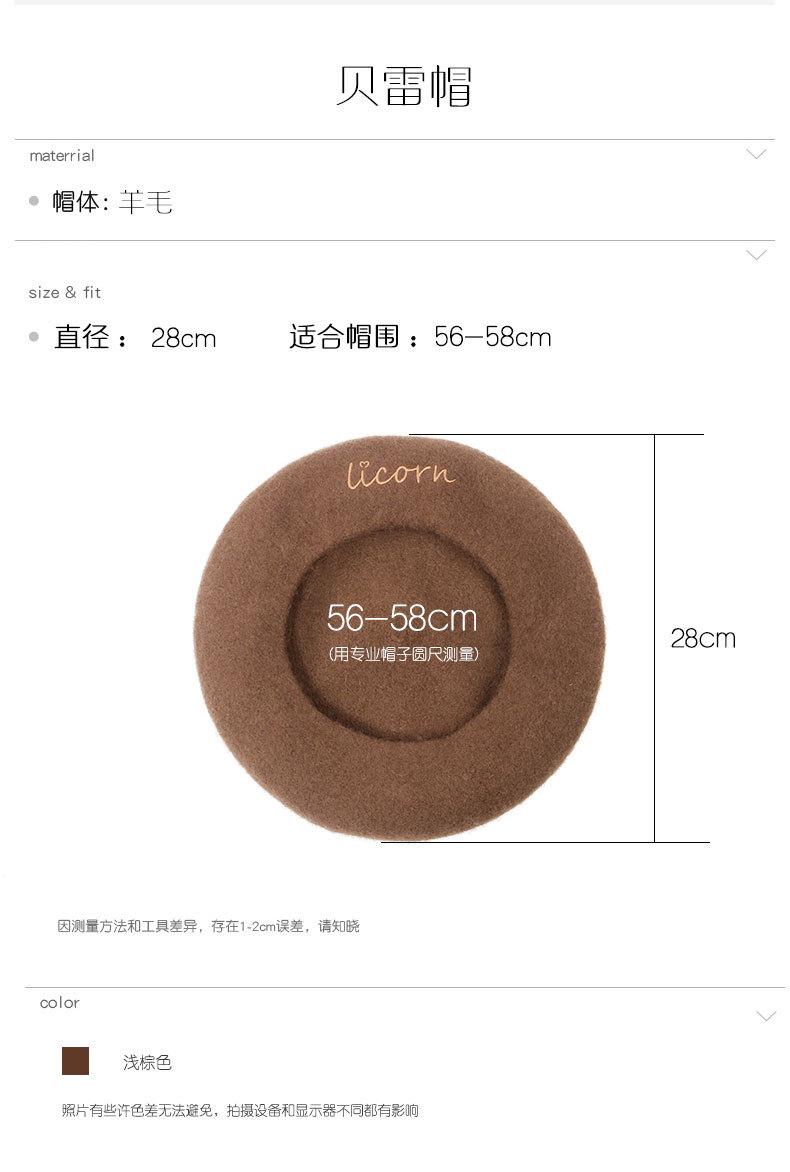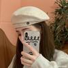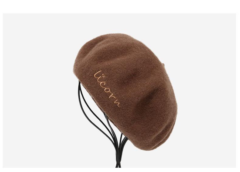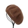 Boina de mujer para otoño e invierno, marrón claro, con letras bordadas, de lana, estilo coreano, estilo japonés, informal, de moda.