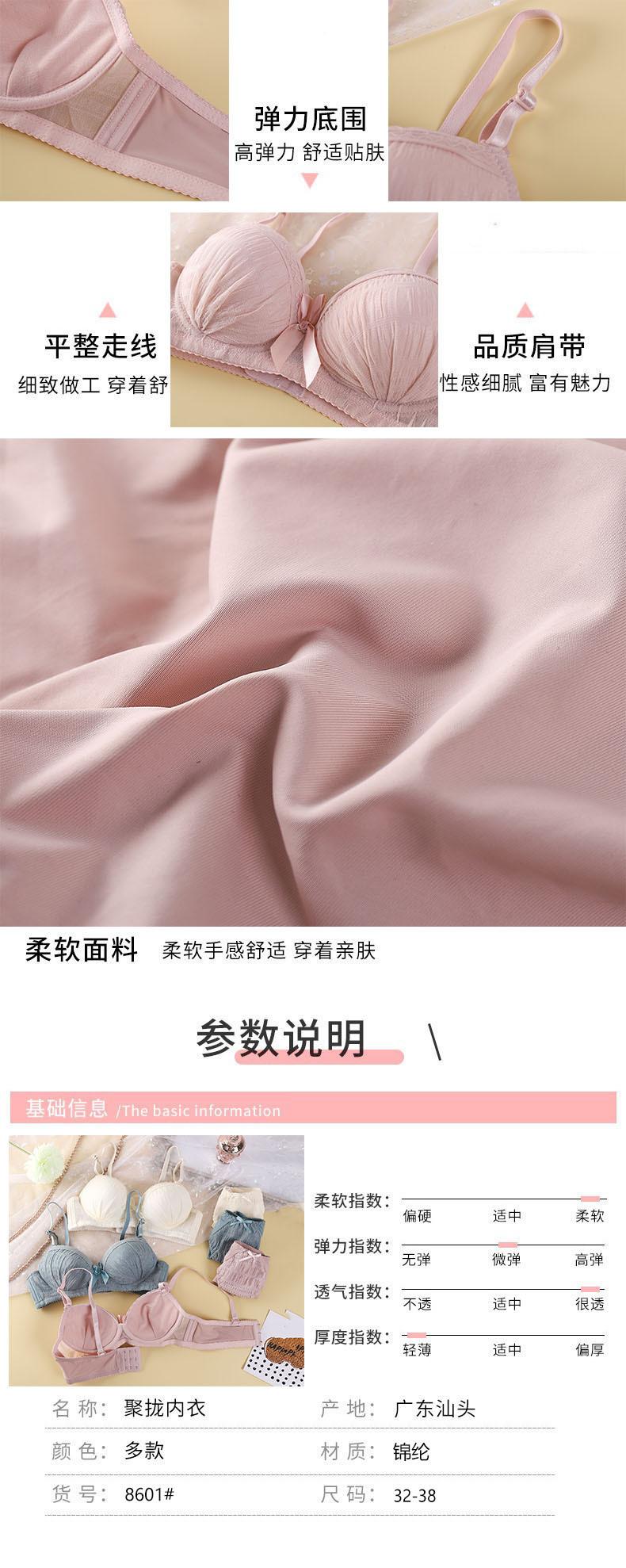 Ropa interior transfronteriza fina de verano con push-up y pecho pequeño, soporte superior especial, sin aro de acero, sujetador sexy ajustable.