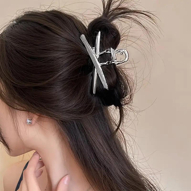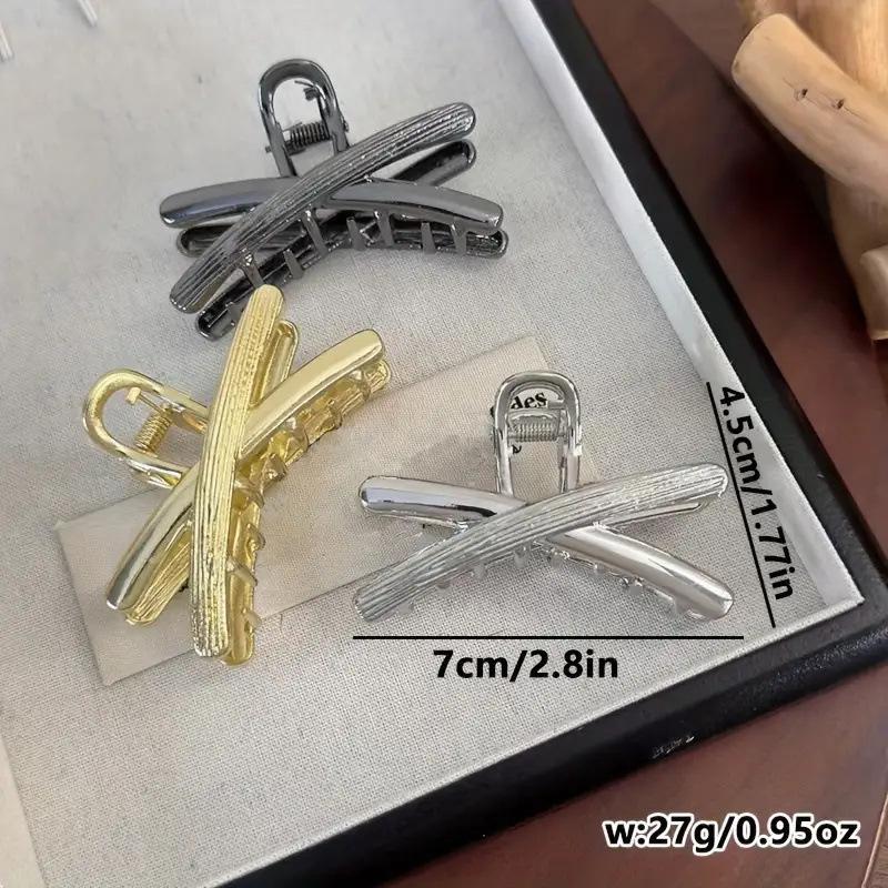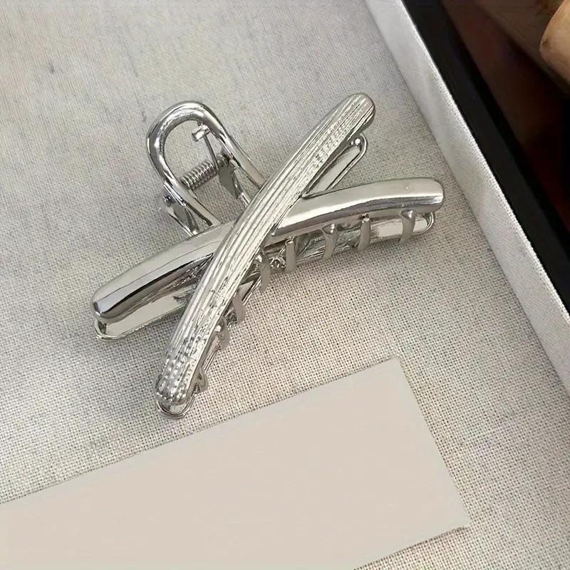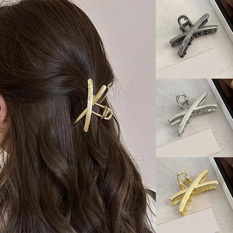 Elegante Pinza Metálica Cruzada para Semirrecogido para Mujer 2024 Nuevo Placa Trasera Pinza de Tiburón Pasador Grande Accesorios para el Cabello